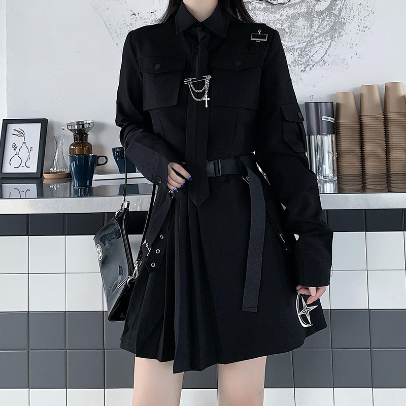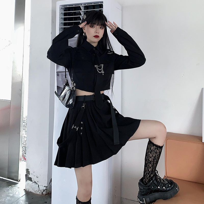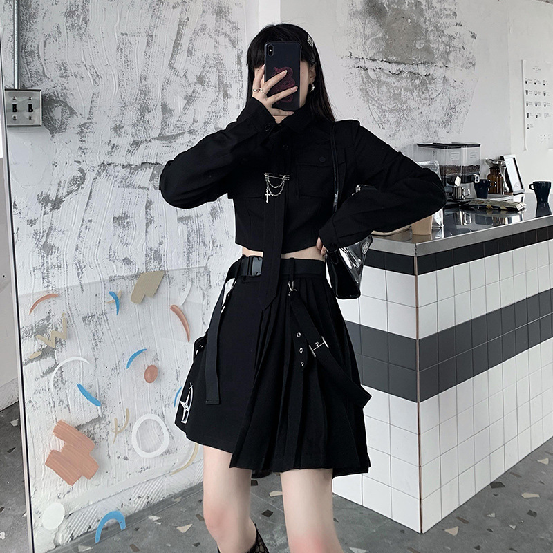 Large Size Fat Mm Dark Super Cool Street Fried Short Pleated Skirt Suit Women