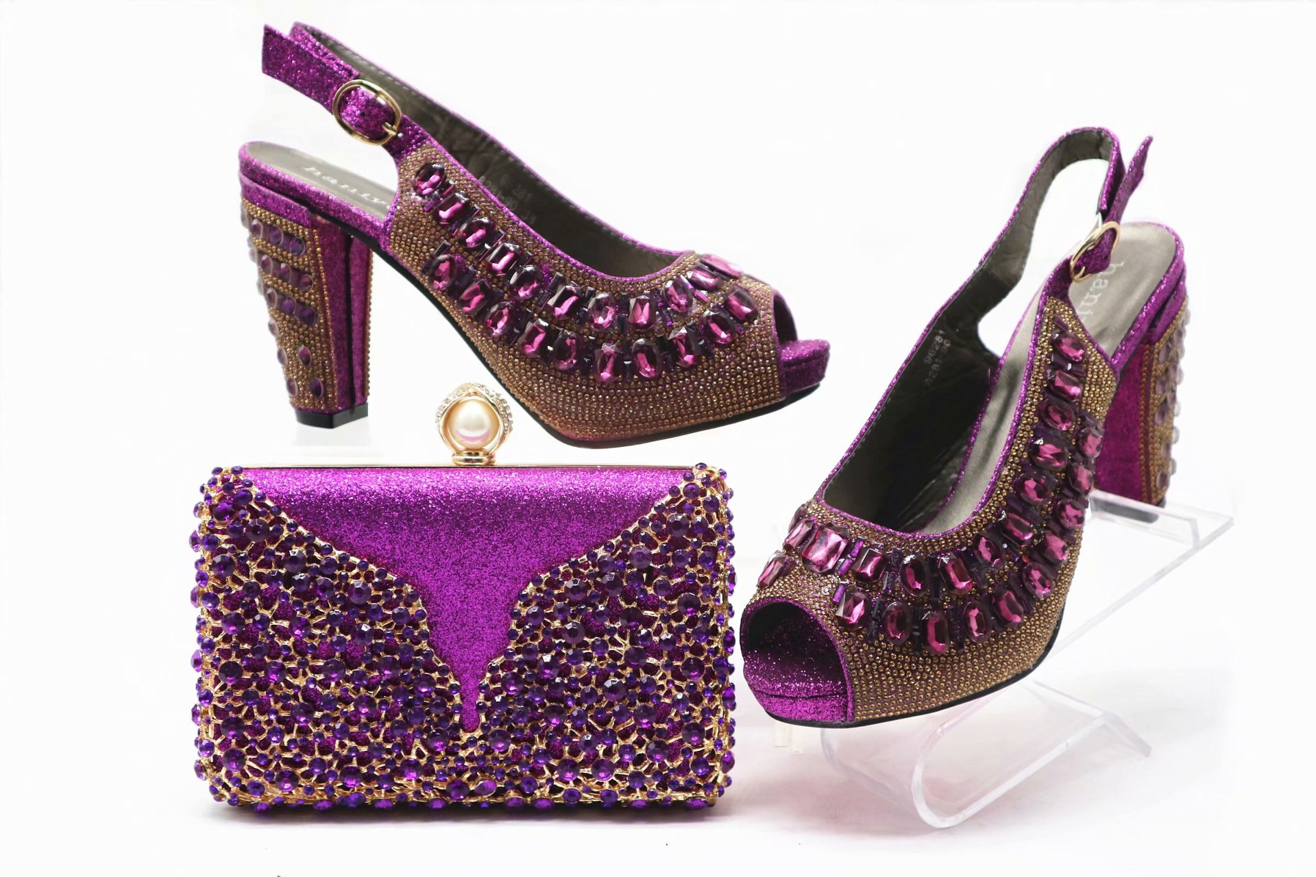 Large Size Rhinestone Bag With Shoes Wedding Diagonal Fashion