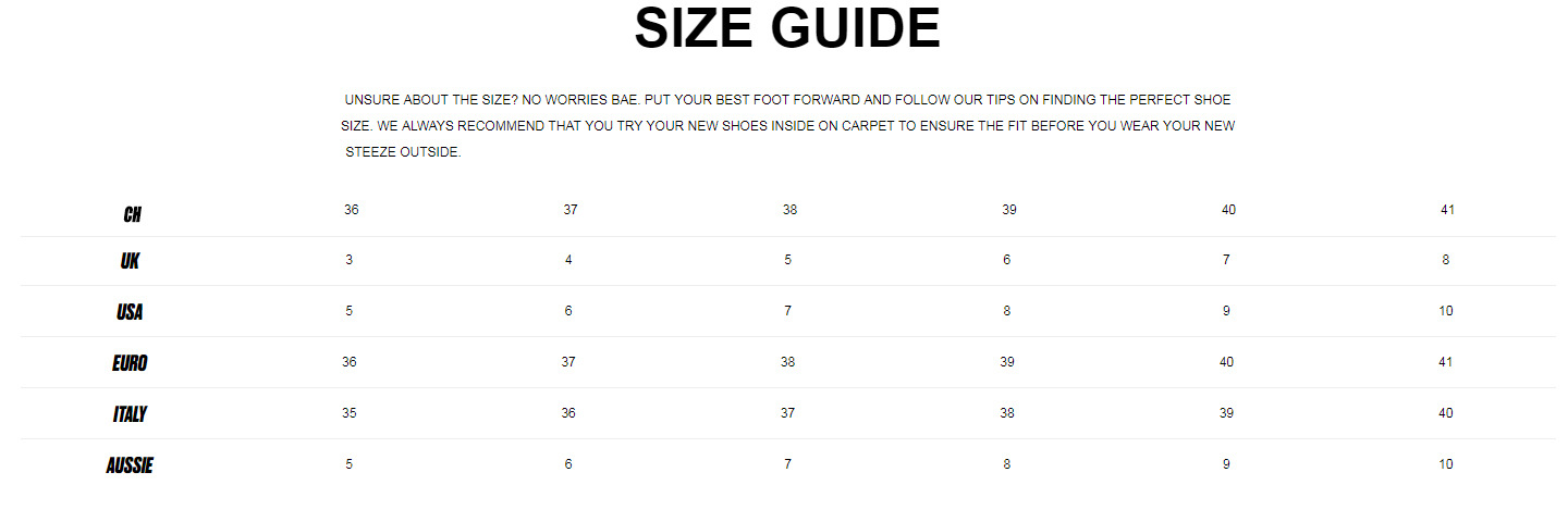 Sizes: 36, 37, 38, 39, 40, 41, 42, 43