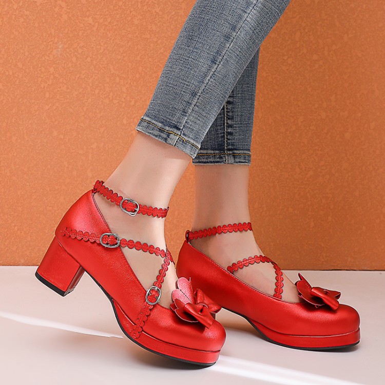 Large Size Women's New Bow Anklet Thick Heel Platform Shoes