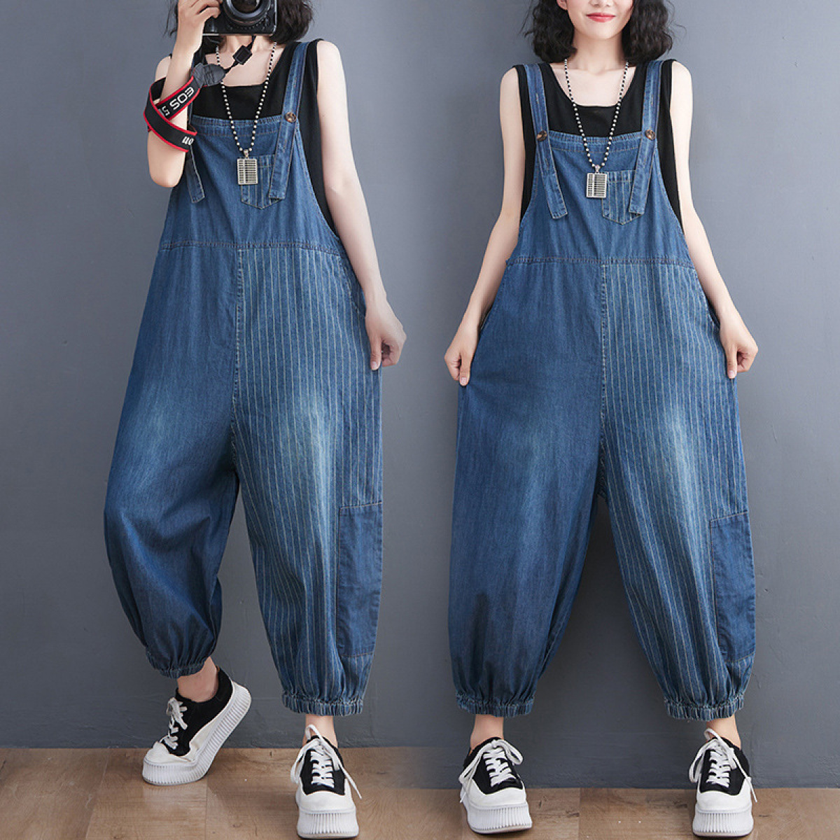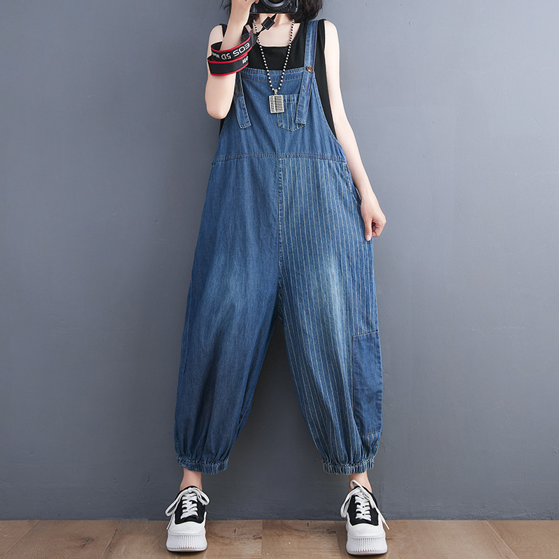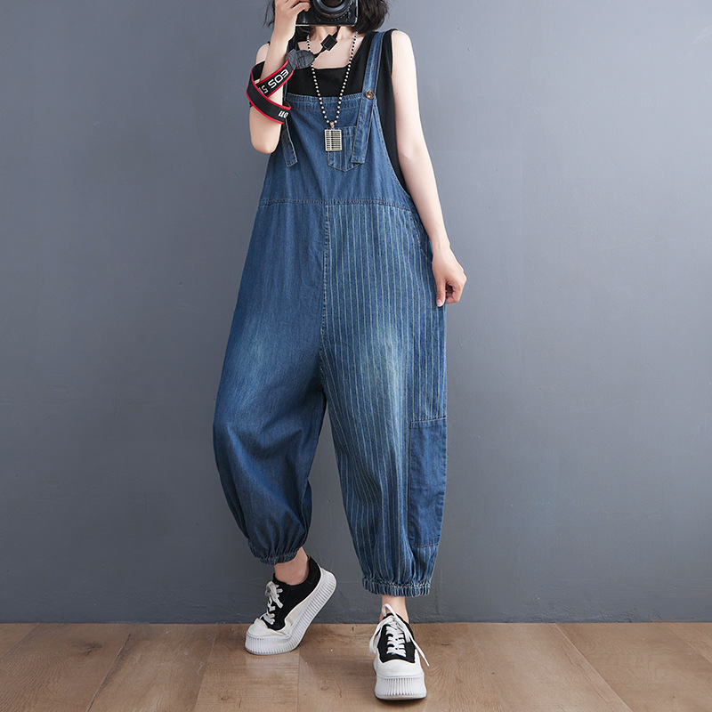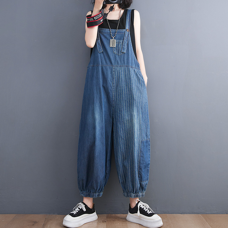 Large Size Women's New Literary Retro Denim Overalls Women