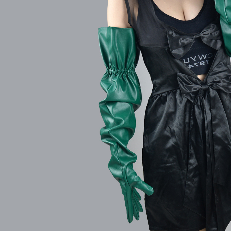 Large Sleeve Loose Long Leather Elastic Belt Gloves
