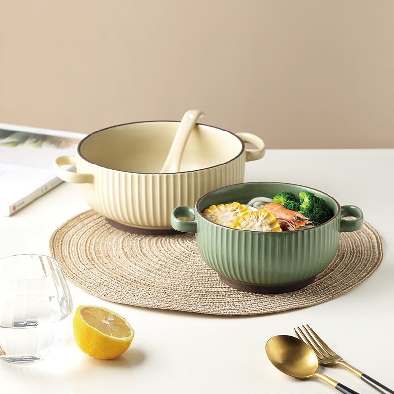 Color: 7.6-inch binaural bowl-beige, 7.6-inch binaural bowl-dark green, 7.6-inch binaural bowl-dark blue, 7.6-inch binaural bowl-white, 6-inch binaural bowl-beige, 6-inch binaural bowl-dark green , 6-inch binaural bowl-dark blue, 6-inch binaural bowl-white
