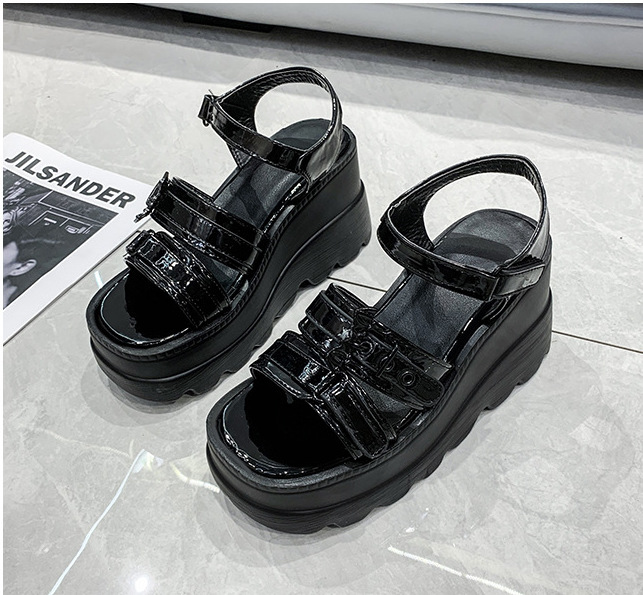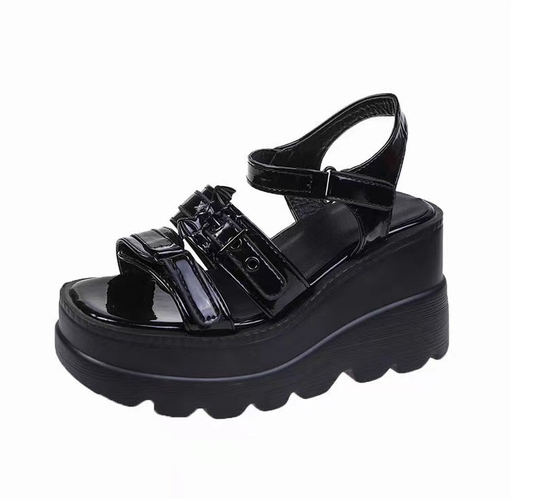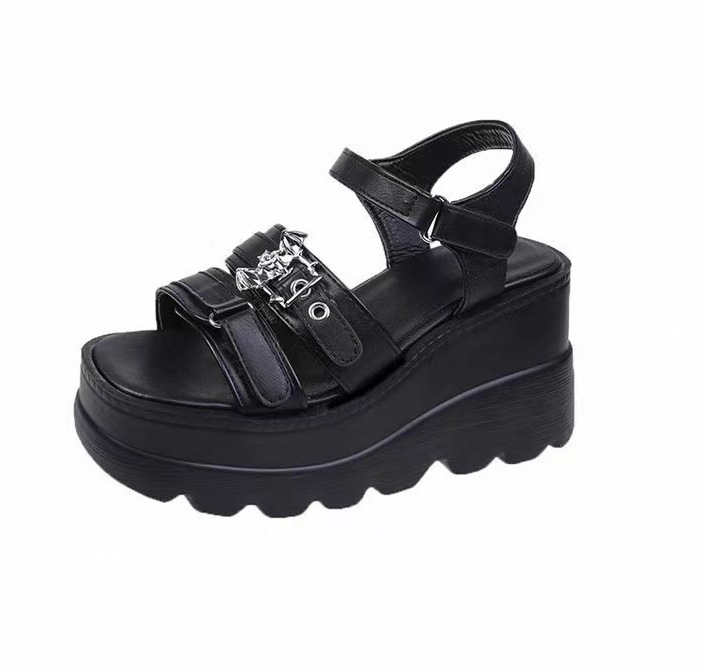 Large Wedge Heel Sandals Women's New Fashion Belt Buckle