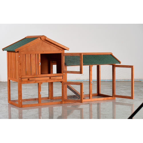 Product Name:Large Wooden Rabbit Hutch, 2-Story Outdoor Bunny Cage with Waterproof Asphalt Roof, Pull-Out Tray & Ramp, Fir Wood Pet House for Rabbits, Chickens, Guinea Pigs (Brown & Green)