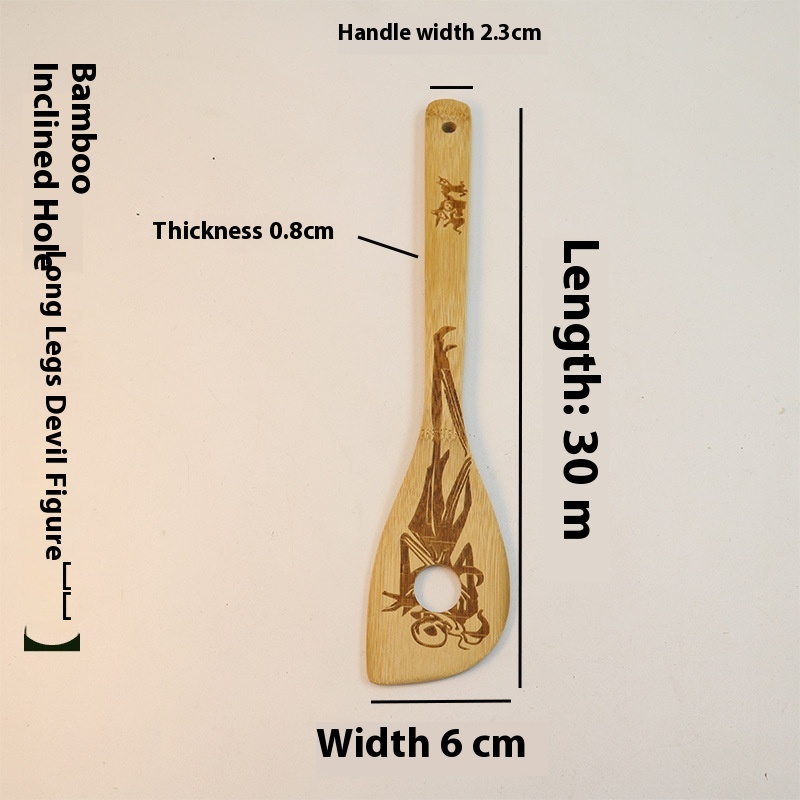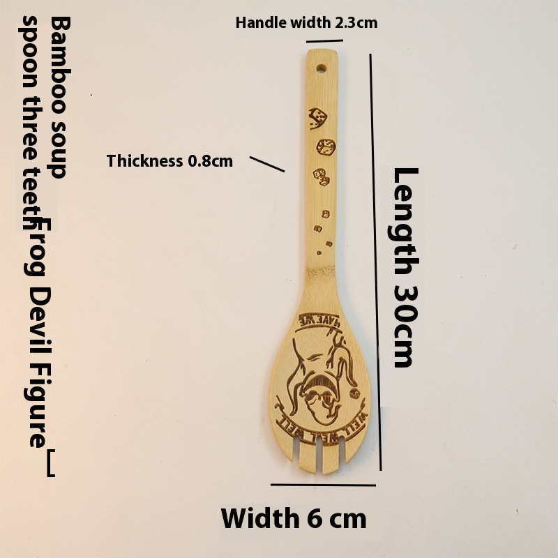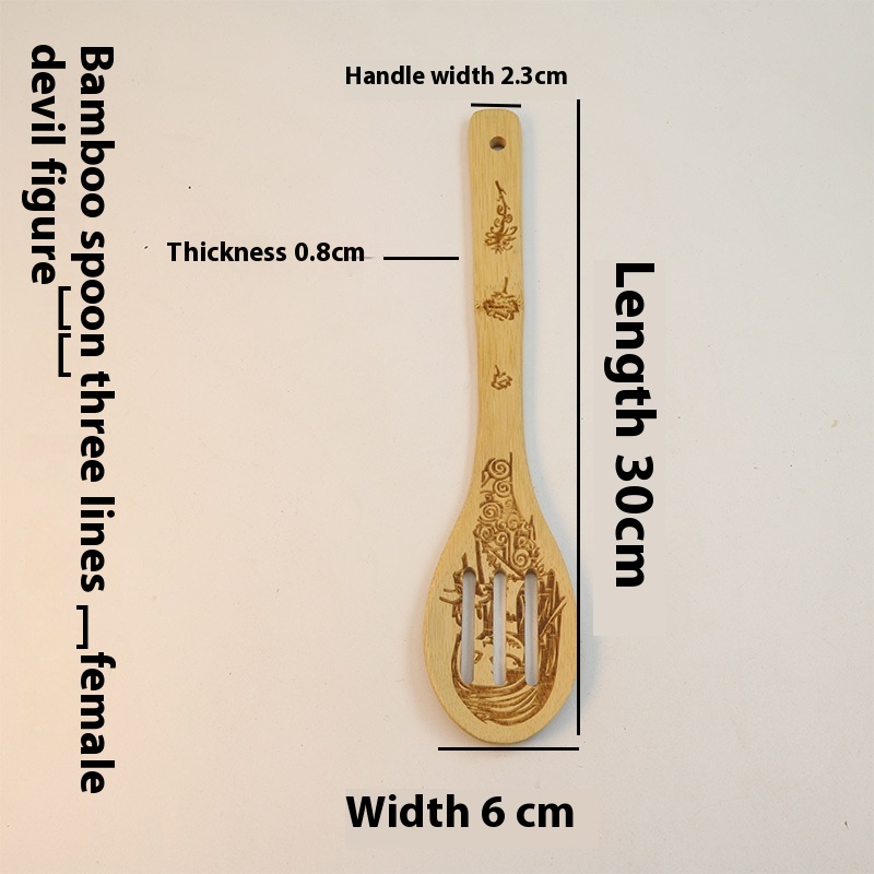 Size: Two-ditch bamboo shovel carving Ghost Bridge couple 30 x6cm, bamboo soup three-tooth carving frog devil figure 30 x6cm, bamboo soup three-line carving female devil figure 30 x6cm, bamboo soup spoon carving small flying ghost figure 30 x6cm, bamboo oblique hole carving long leg devil figure 30x6cm, bamboo spoon 5-piece set carving Devil series figure 30x6cm