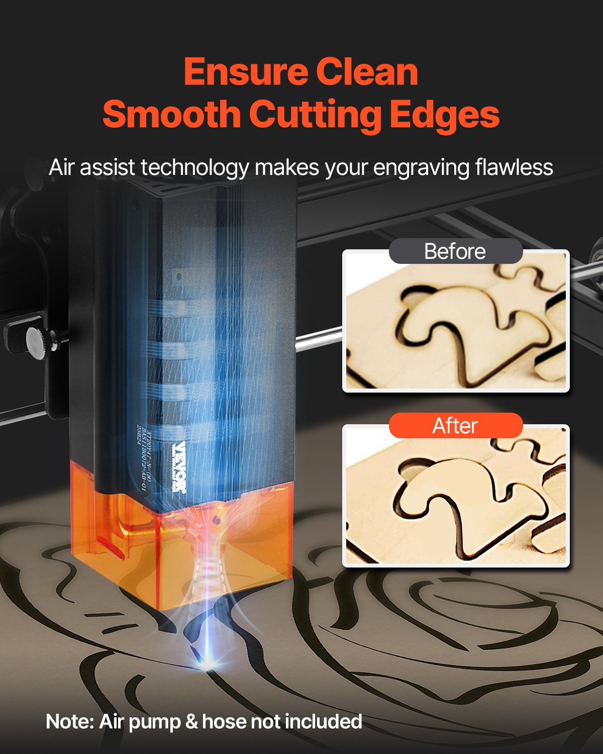 Compatible with Air Assist Pump: Enhance cutting performance with air assist compatibility. When paired with an air assist pump, high-speed airflow improves cutting efficiency, avoids dark edges, and delivers a clean, smooth finish. This laser engraver also helps lower surface temperatures during engraving and cutting, resulting in crisp, precise edges (Air assist pump not included)