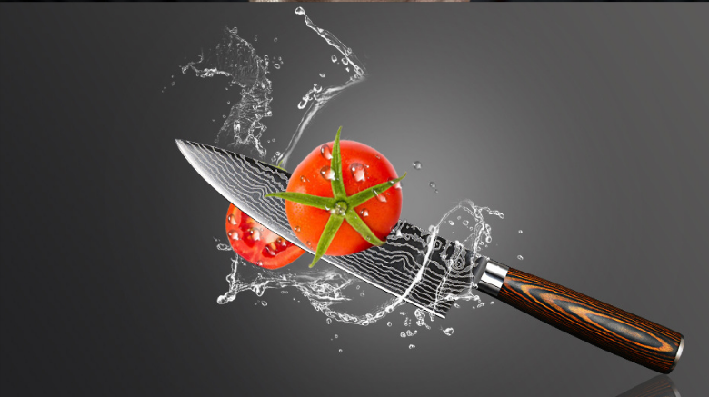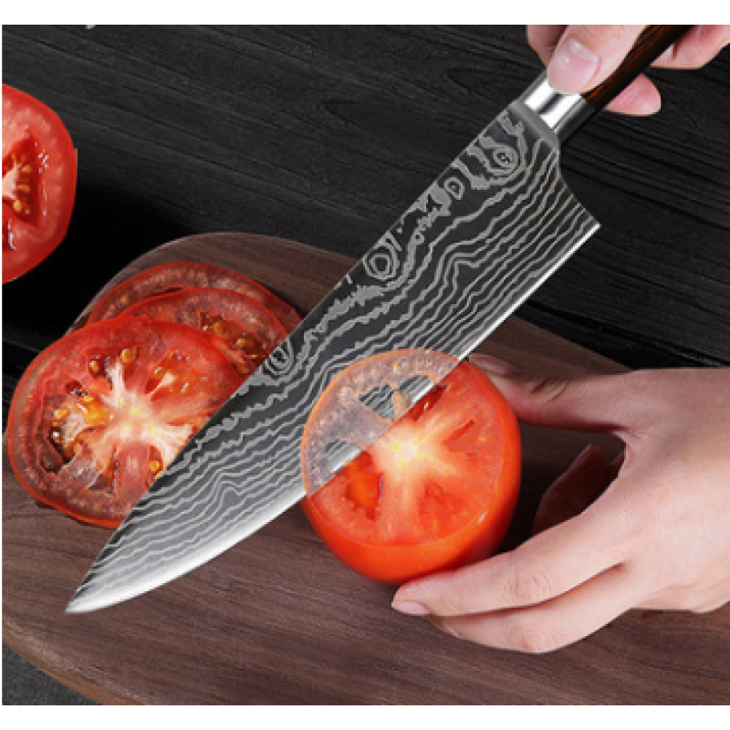 Product Name: 7 branded Damascus laser wavy color wood handle 8 inch stainless steel knife.