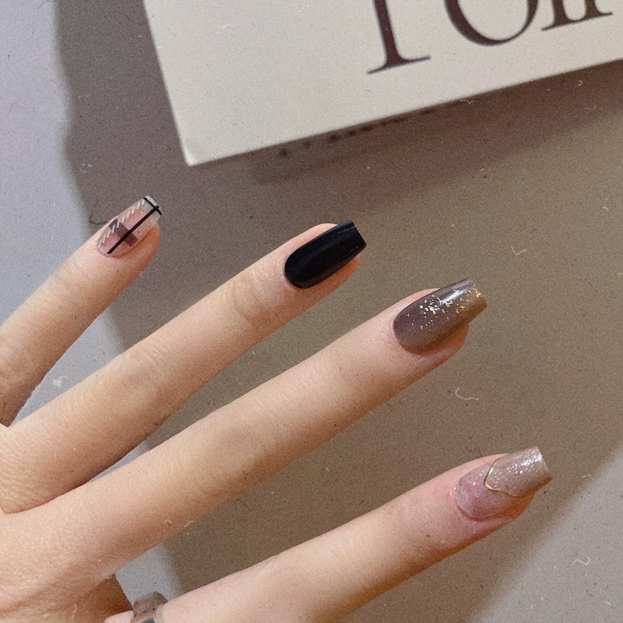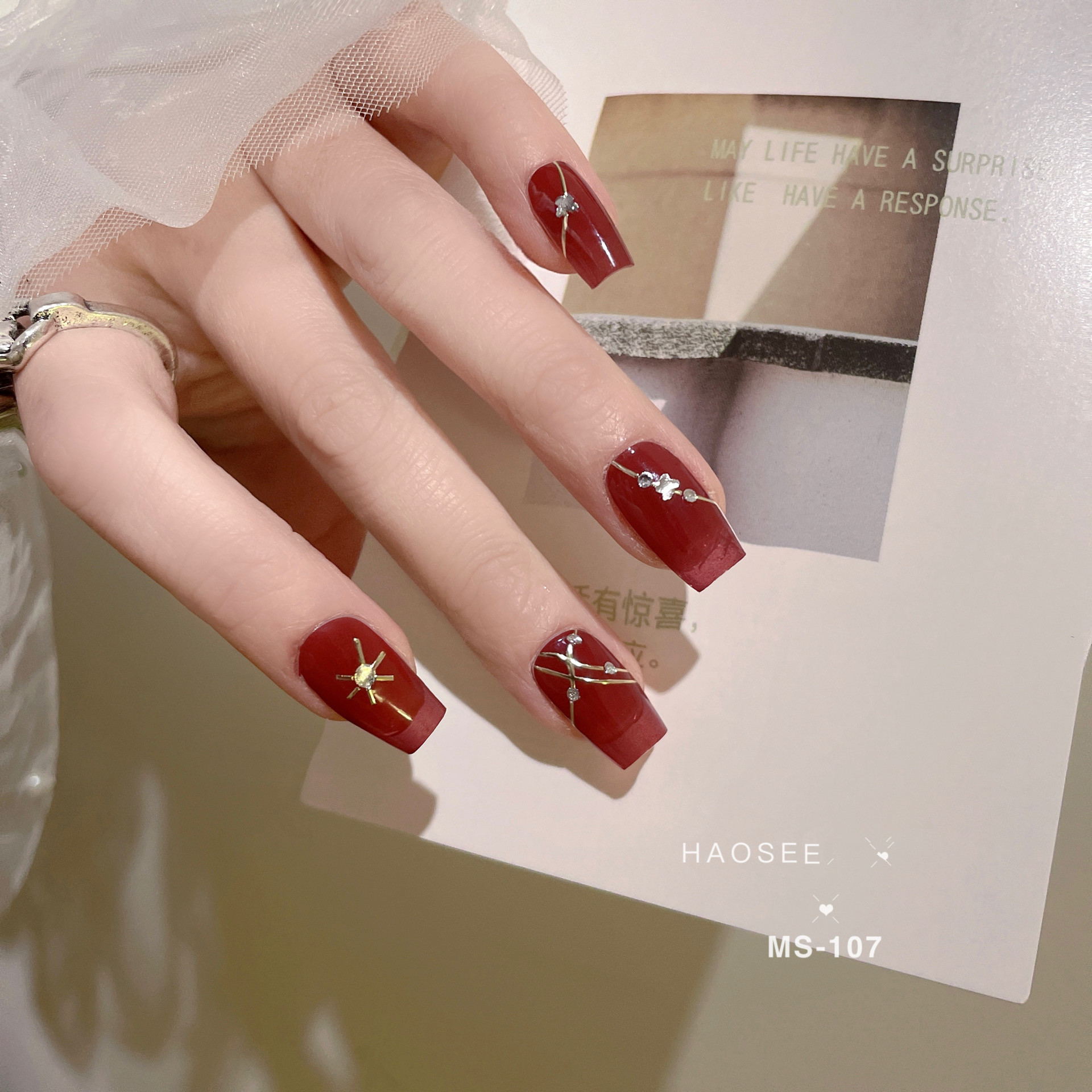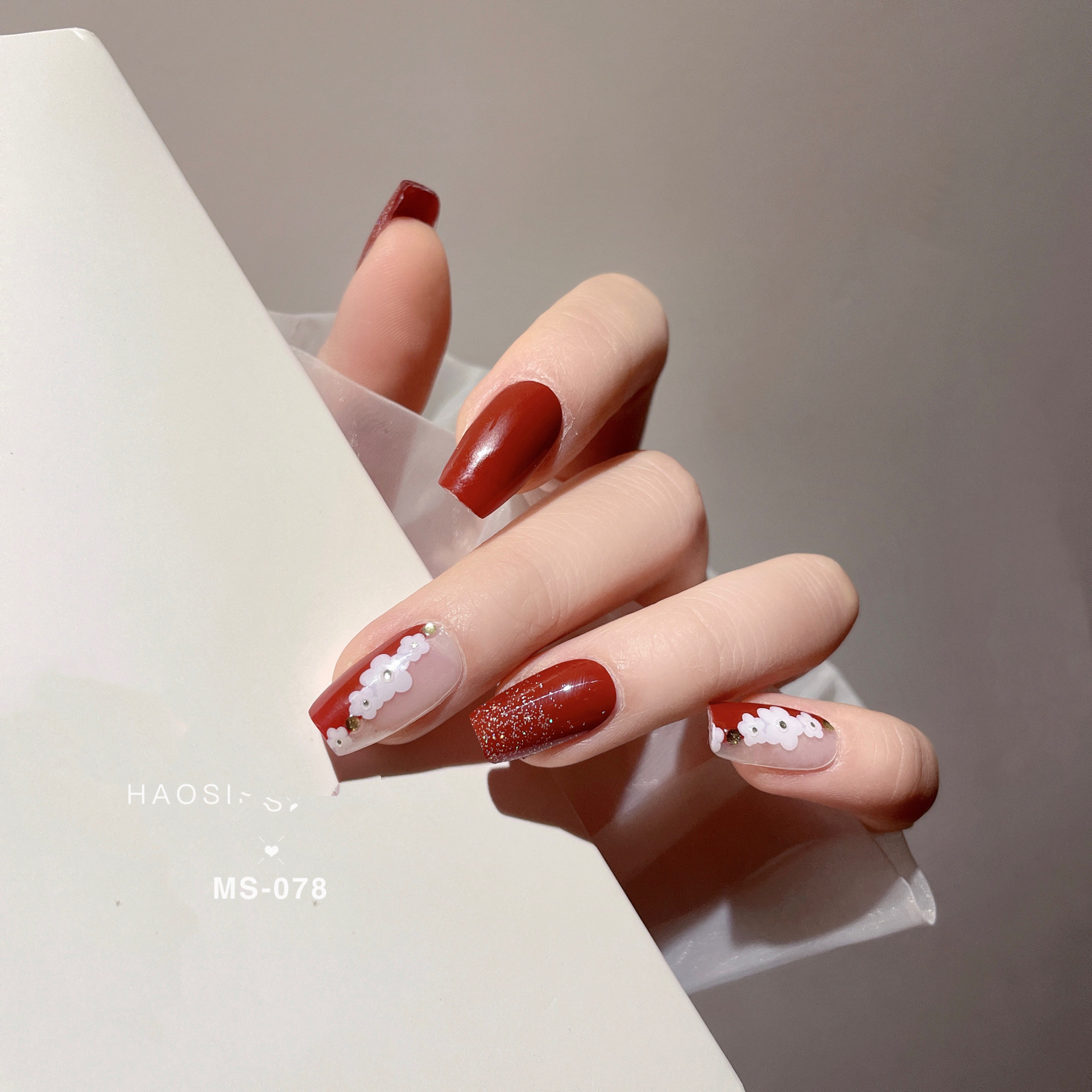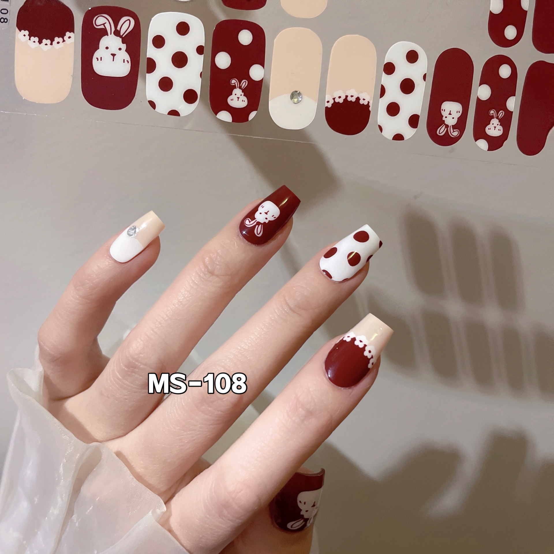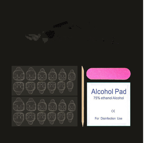 Nail sticker + paper box + alcohol bag + nail file + wooden stick
