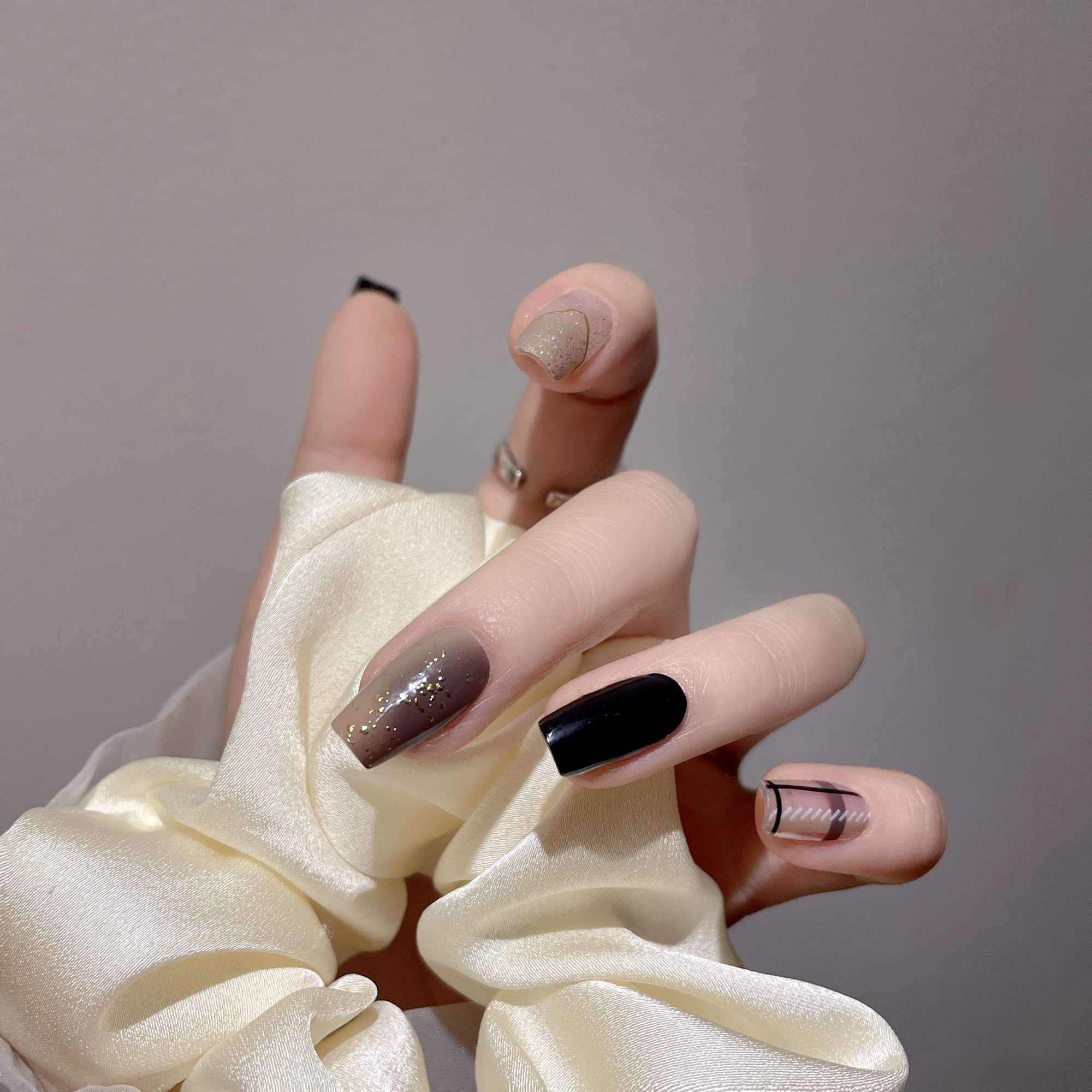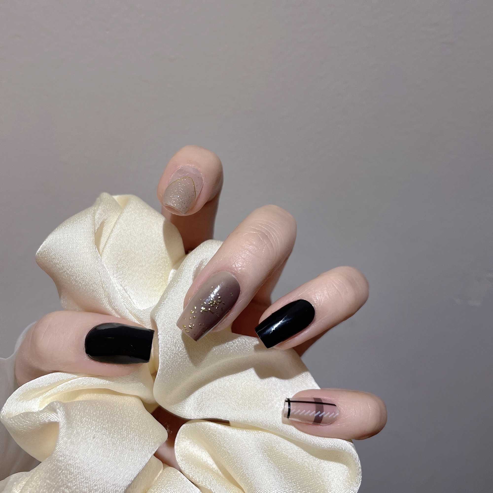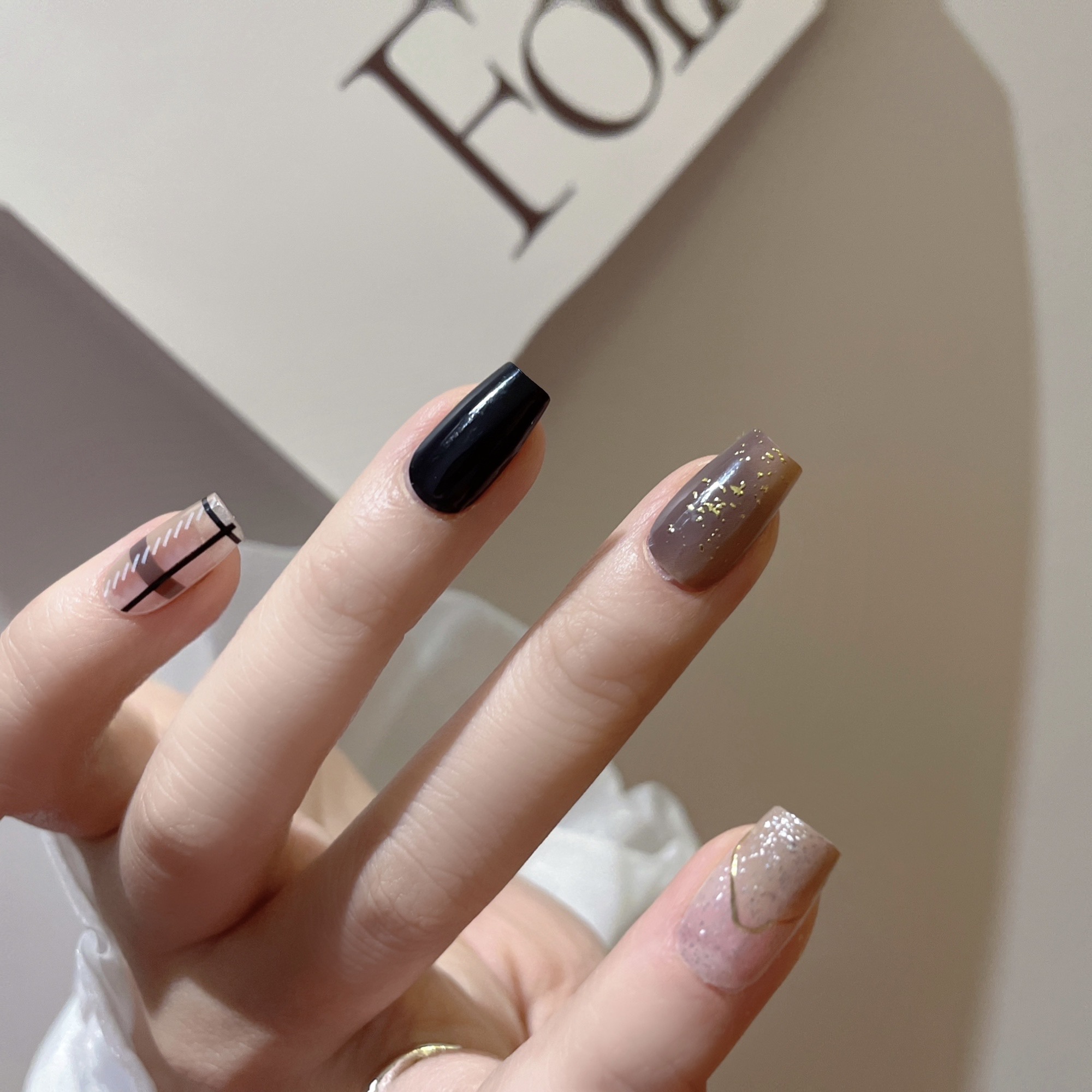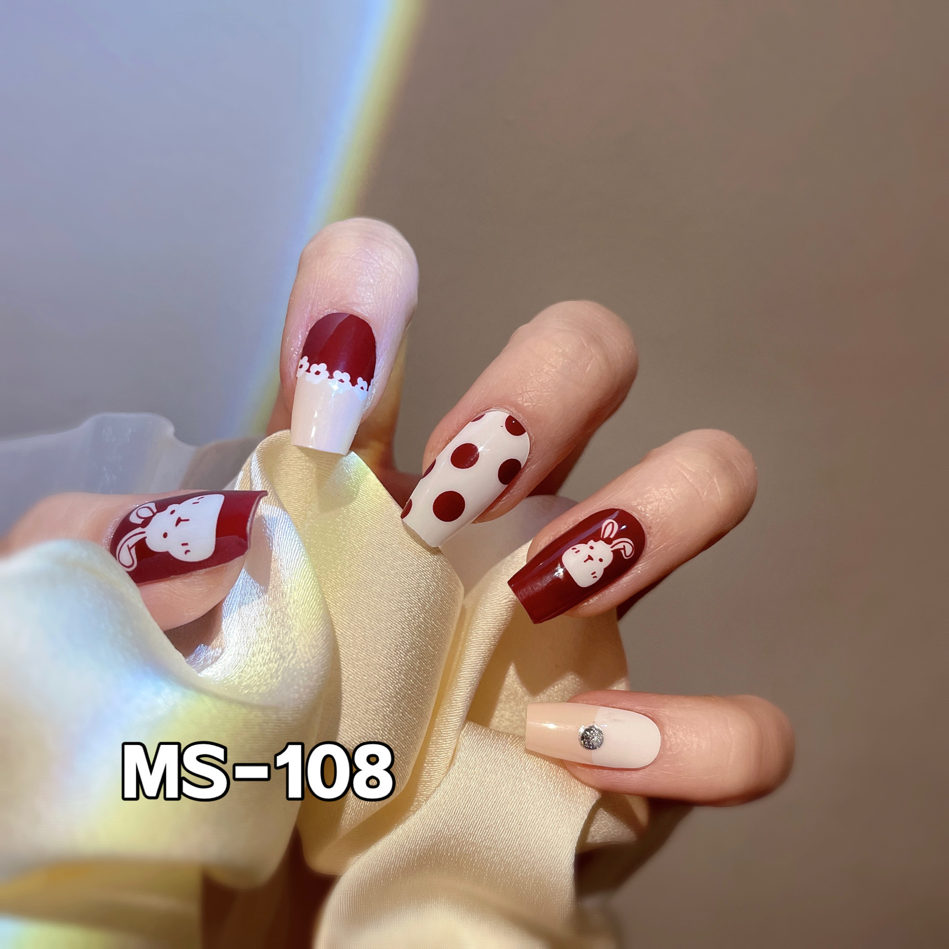 Nail sticker + paper box + alcohol bag + nail file + wooden stick