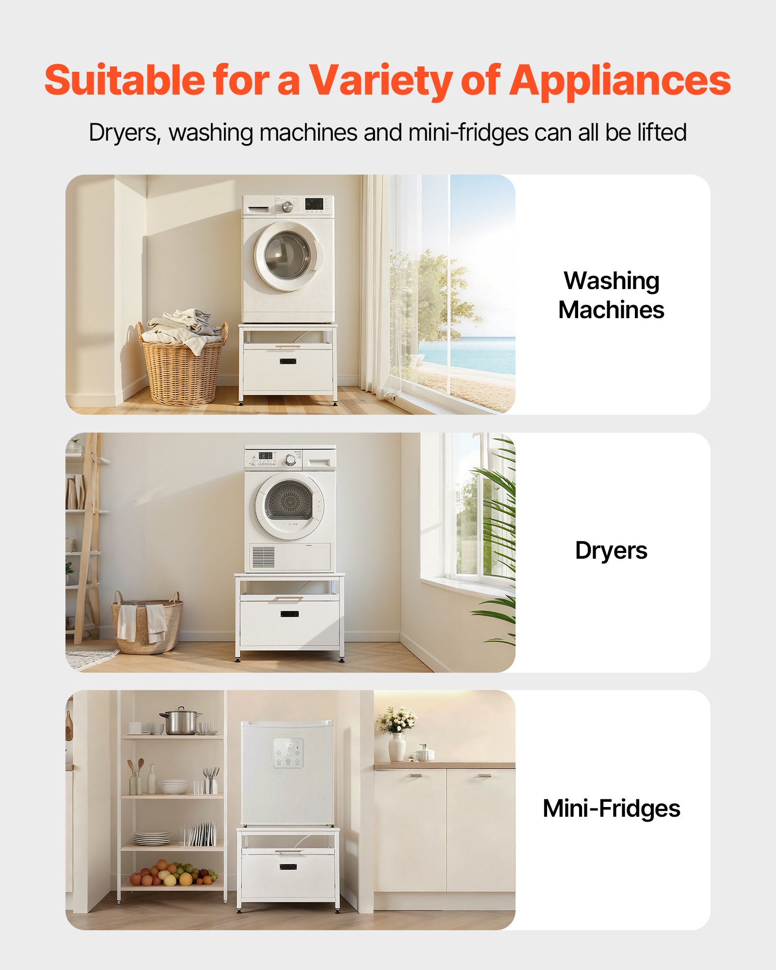 5-Minute Fast Installation: These washer and dryer pedestals include a tool kit and clear instructions for quick setup. No professional skills required—easy self-assembly saves up to 70% installation time compared to traditional bases