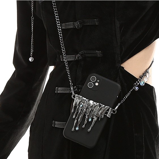 Color: lava melting Moonstone mobile phone charm [gun Black]-K317622