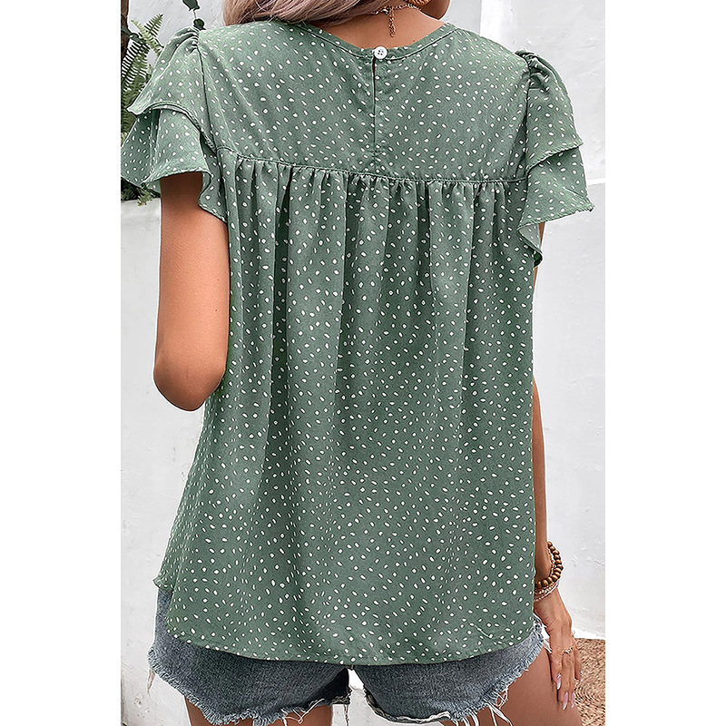 Layered Ruffled Short Sleeves T-shirt European And American Fashion Retro Dots
