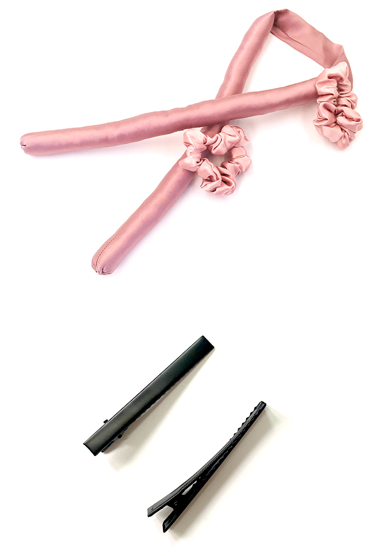 A: Pink rubber rod + 2 hair loops + 2 duckbill clips