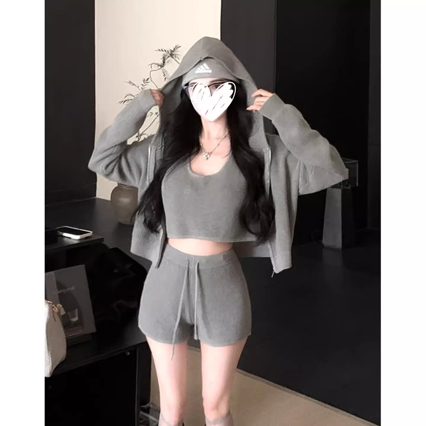 Color: Gray vest coat, beige vest coat