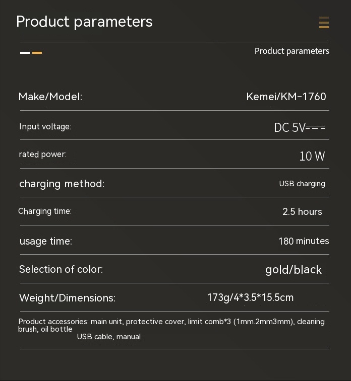 Specifications: KM-1760 Gold, KM-1760 Black
