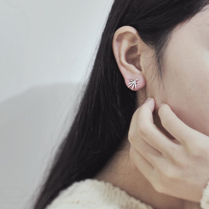 Leaf art element silver earrings