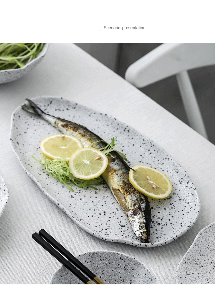Color: flavor plate, 5 inch small bowl, 7 inch shallow plate, 10 inch shallow plate, 12 inch oval plate