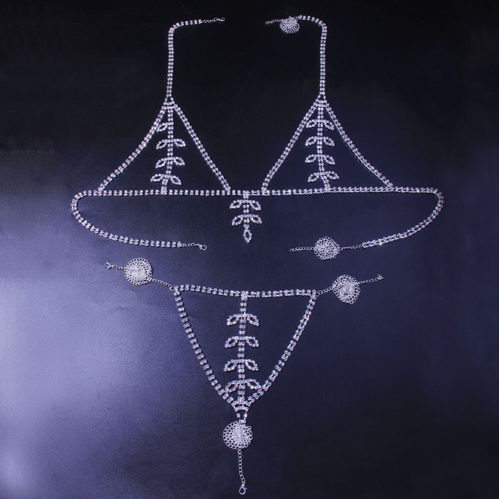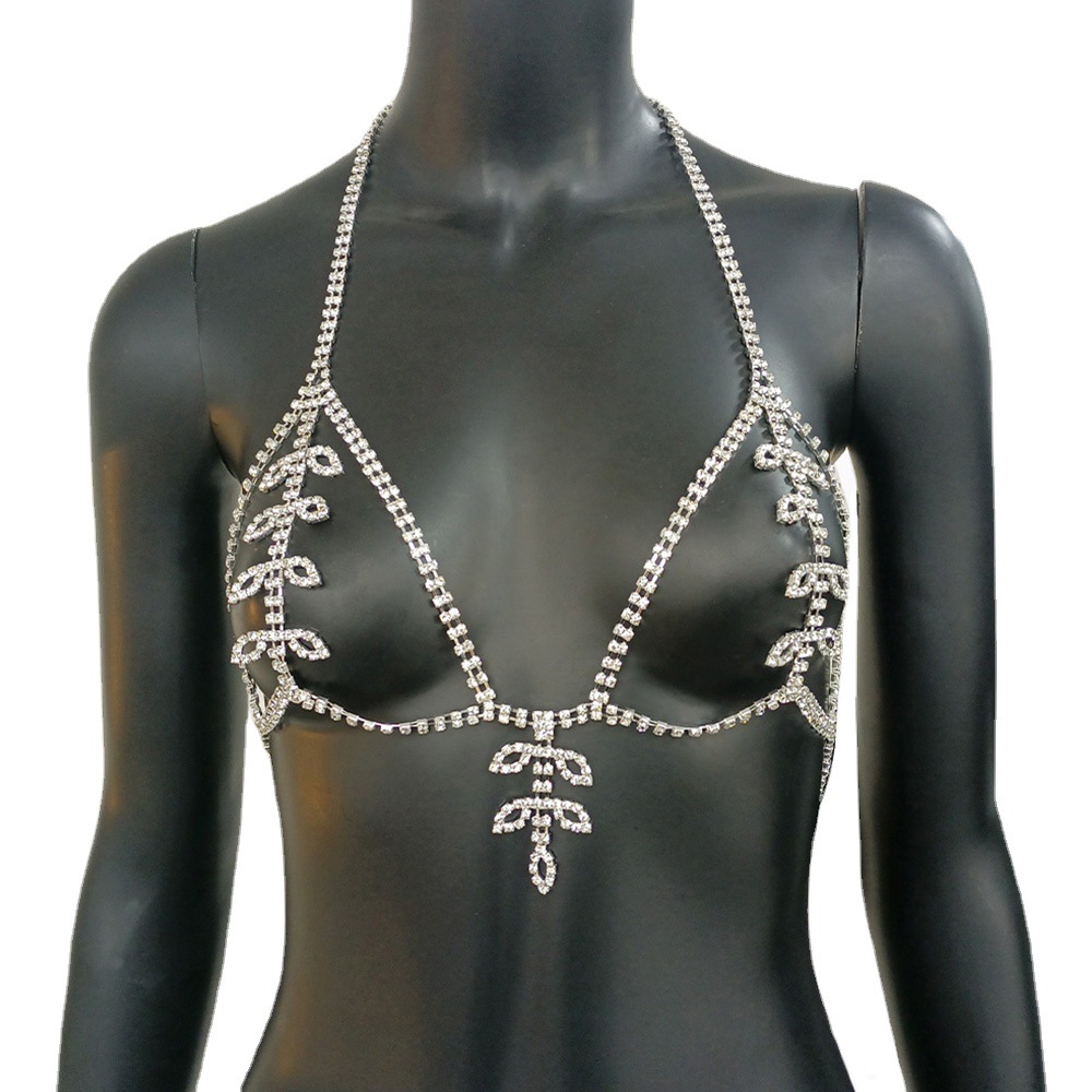 Leaf Rhinestone European And American Bikini Chest Chain