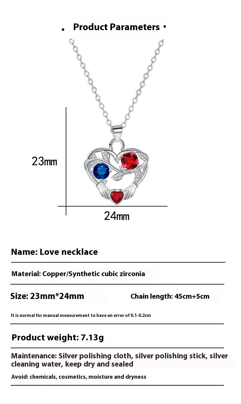 Leaf Winding Heart-shaped Bright Inlaid Necklace For Women