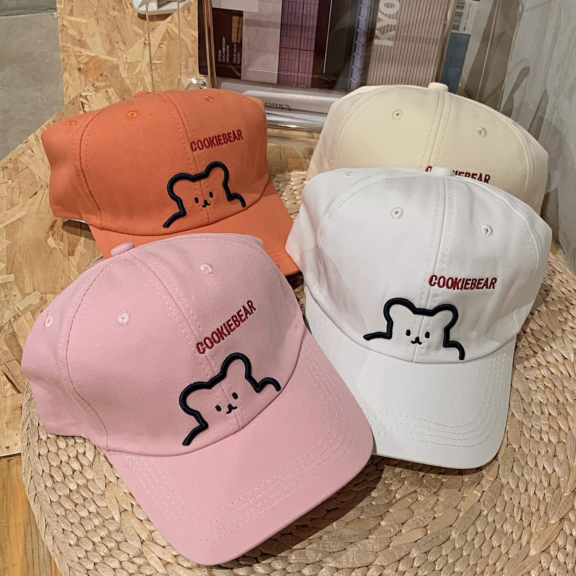 Color: black, white, pink, orange, beige