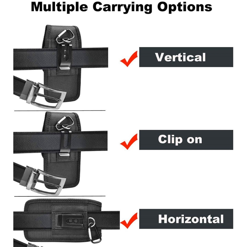 ● Metal belt clip, belt buckle and carabiner hook: The small bag holster has a fixed metal belt clip, which is durable. The belt loop can fix the handbag vertically and horizontally. Use the carabiner loop design to hang it on any backpack or bag.