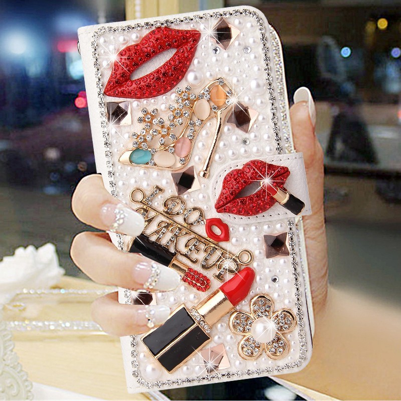 Color: Umbrella wallet-black, lipstick lips-black, gem wallet-black, umbrella wallet-White, gem wallet-White, lipstick lips-White, Crown Fox full diamond-White, full screen Pearl White