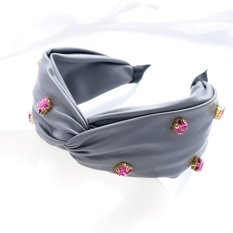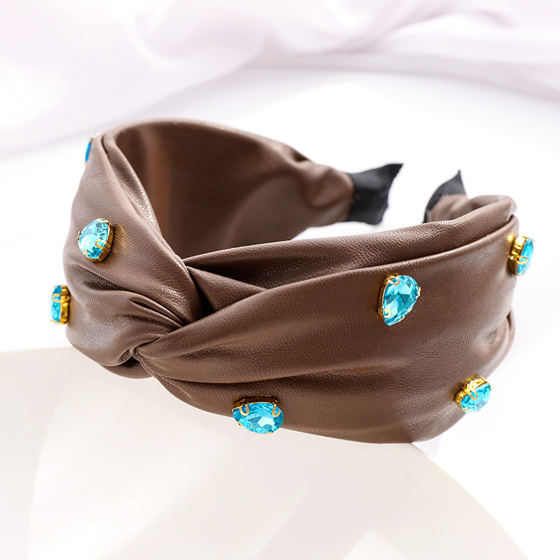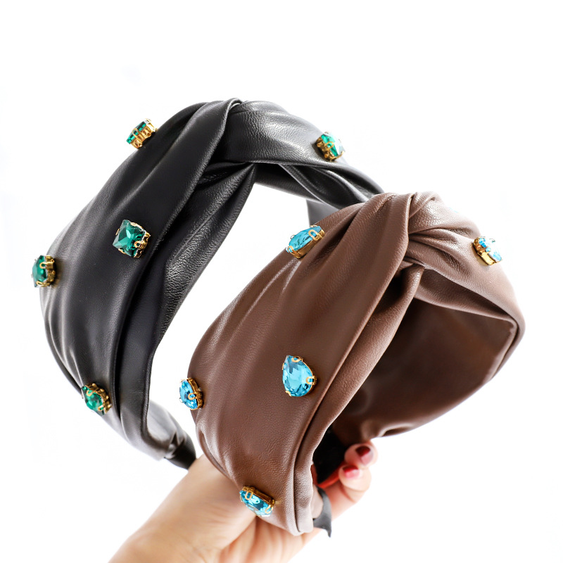 Description:Cross border Hair Band East Gate high grade PU Leather Headband factory direct sales girl color diamond leather hair accessories hairpin