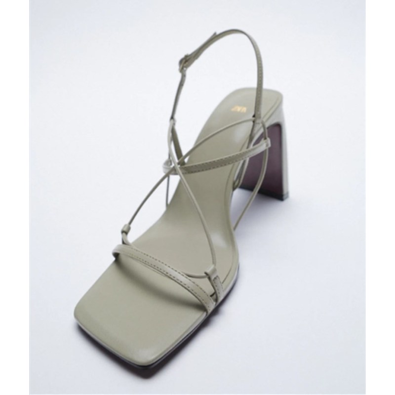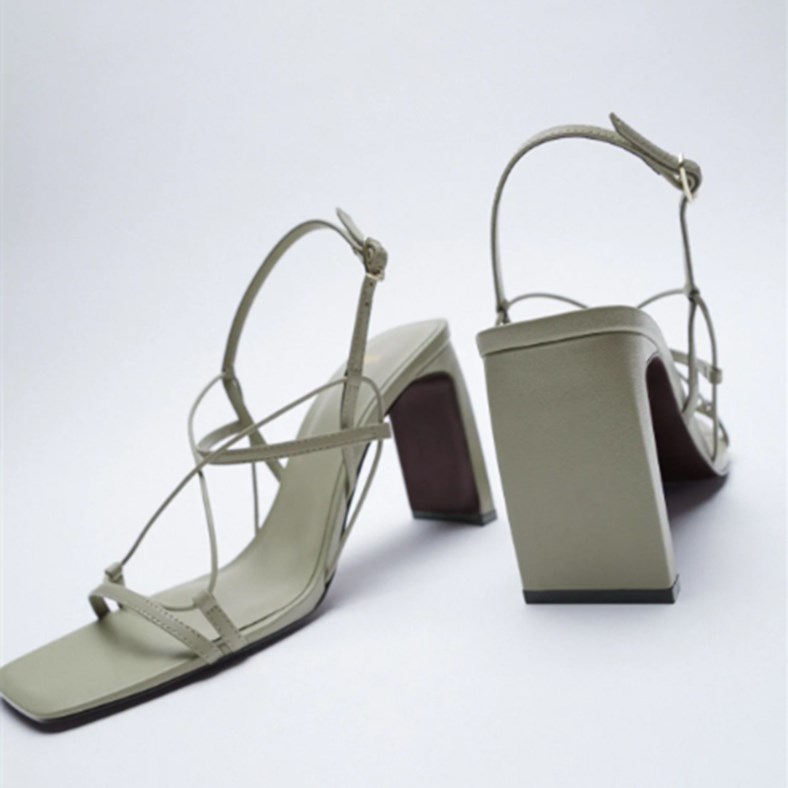 Leather Fine Drawstring High-Heeled Sandals Fashionable Square Toe Outer Wear Thick Heel