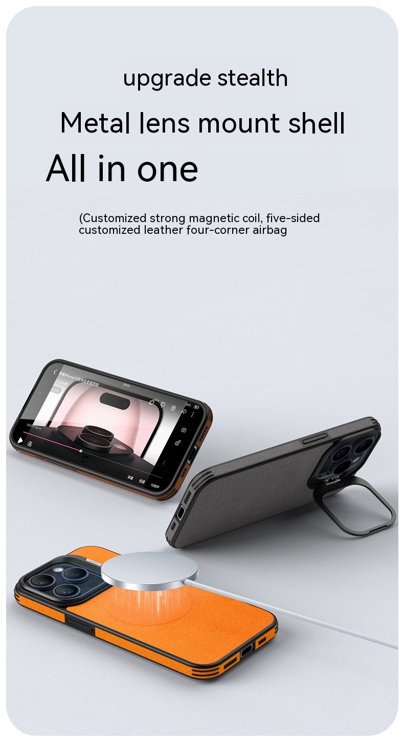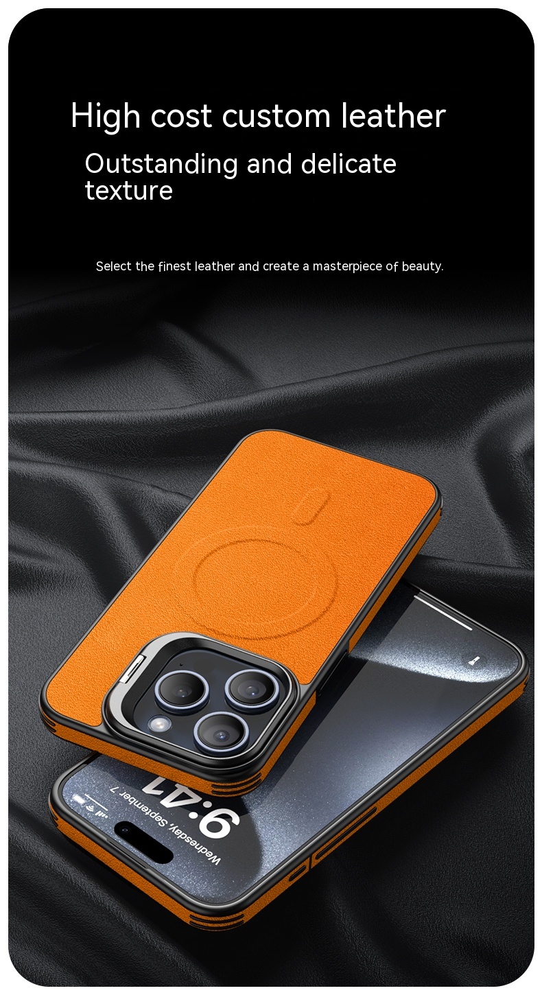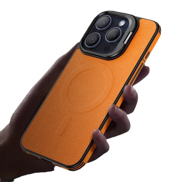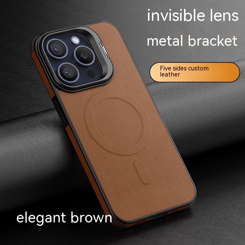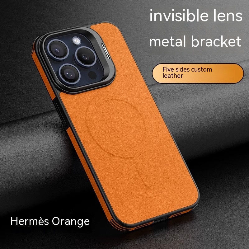 Color: [satin black] leather pattern bracket magnetic suction shell, [Hermes orange] leather pattern bracket magnetic suction shell, [Titanium Gray] leather pattern bracket magnetic suction shell, [elegant brown] leather pattern bracket magnetic suction shell