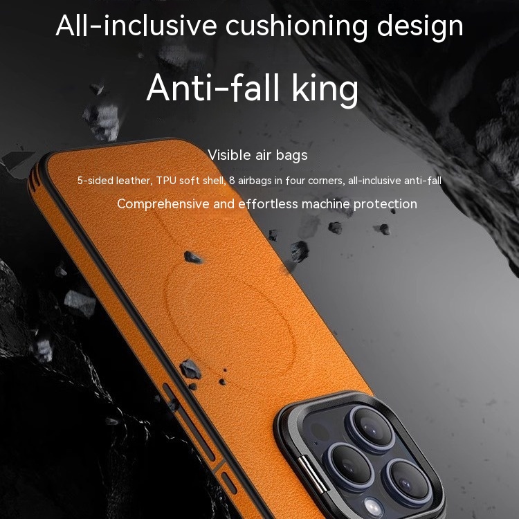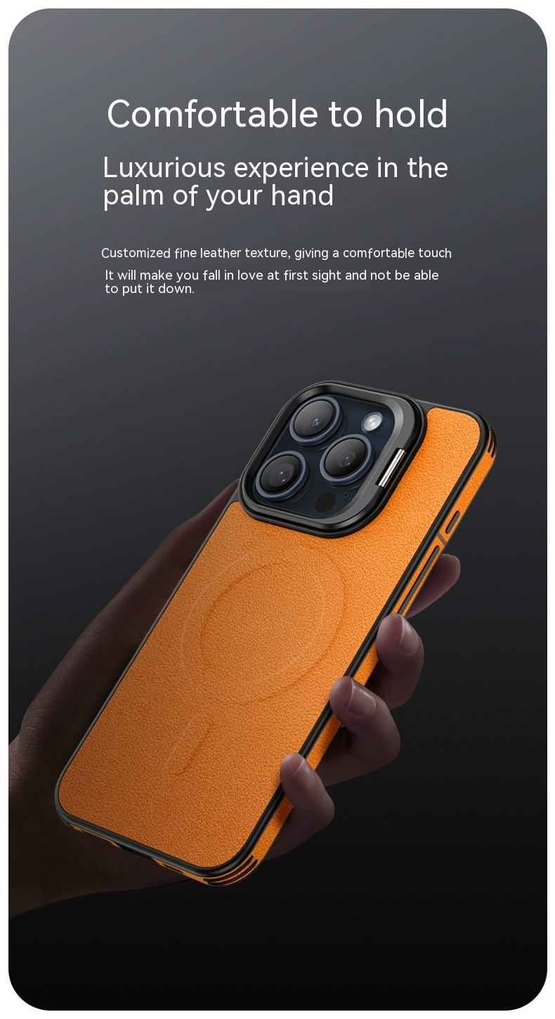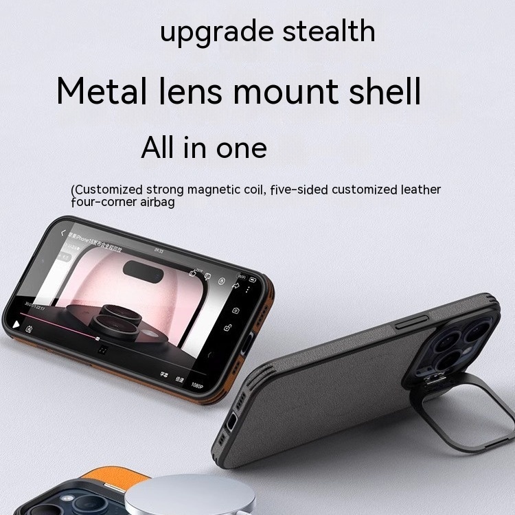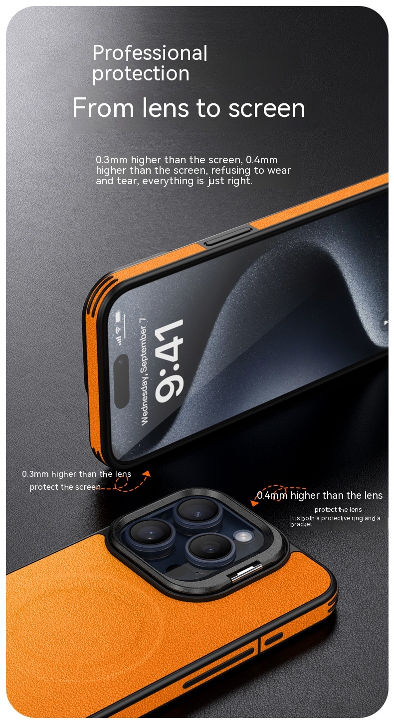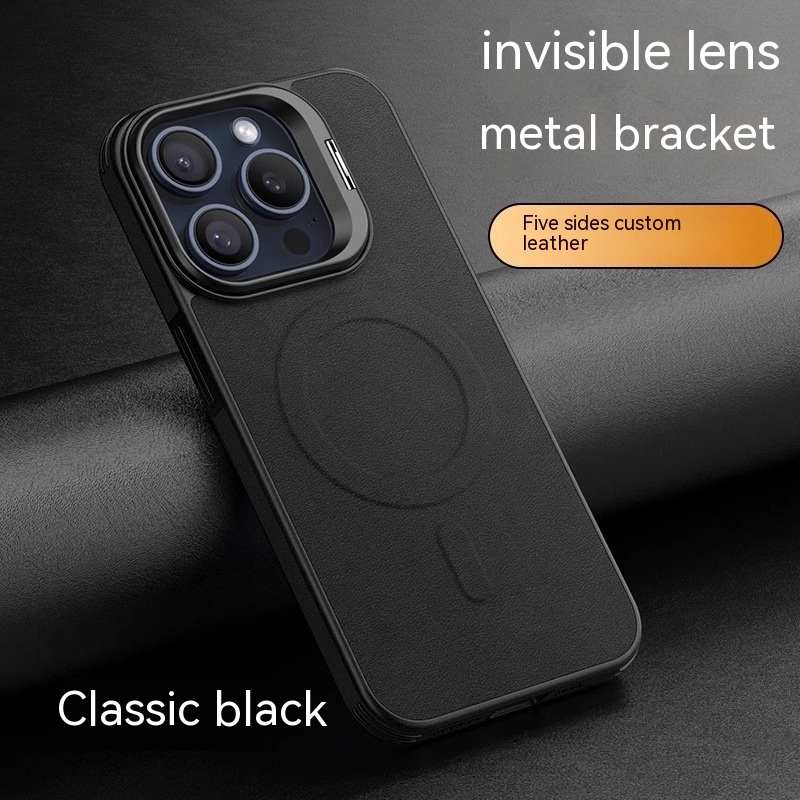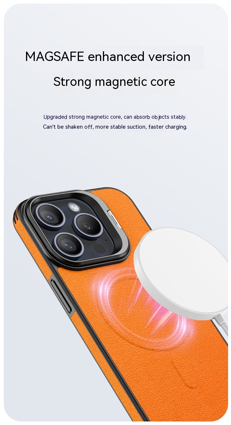 Color: [satin black] leather pattern bracket magnetic suction shell, [Hermes orange] leather pattern bracket magnetic suction shell, [Titanium Gray] leather pattern bracket magnetic suction shell, [elegant brown] leather pattern bracket magnetic suction shell