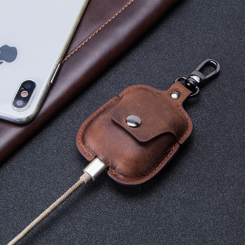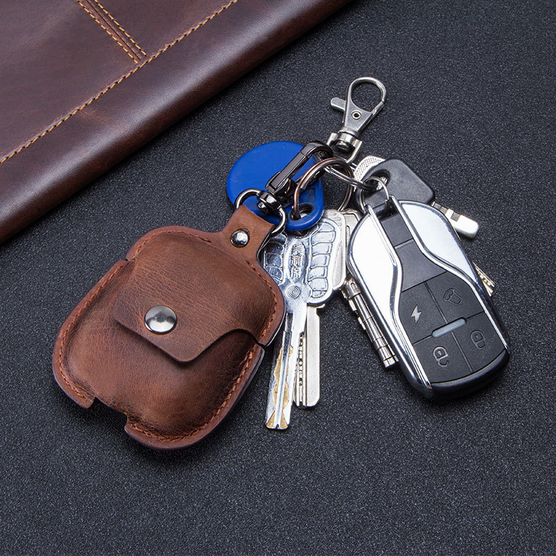 Leather Keychain Portable Earphone Case
