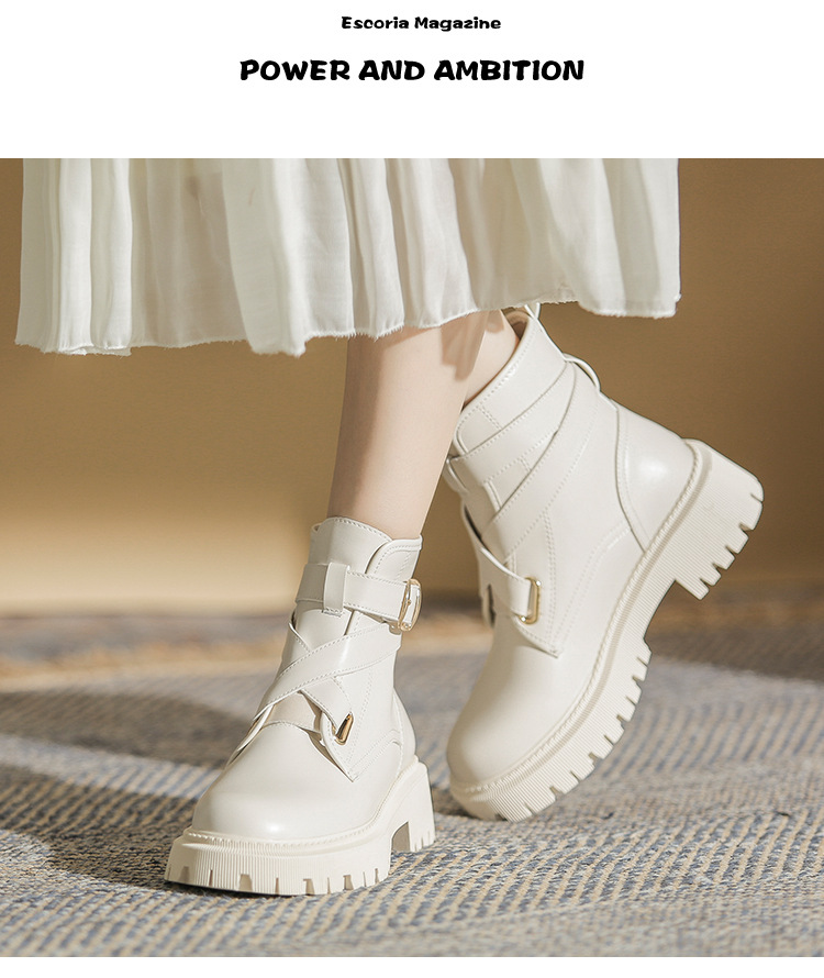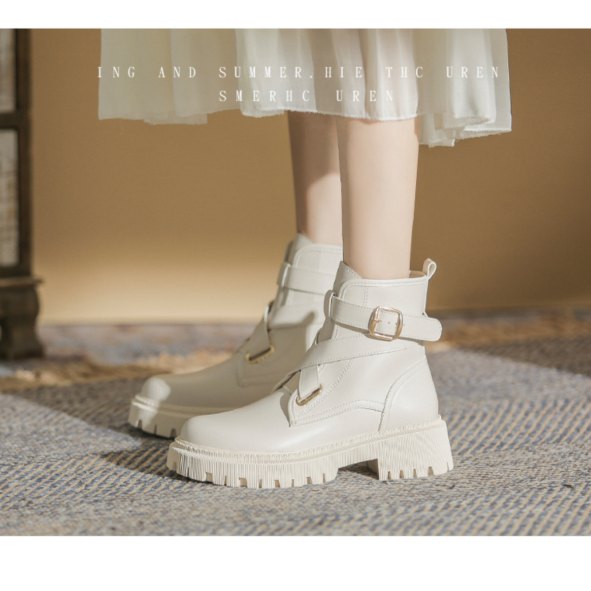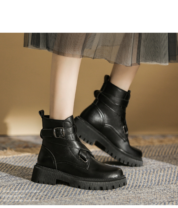 Leather Martin Boots Women's Spring And Autumn Thick-soled Short And Thin Models