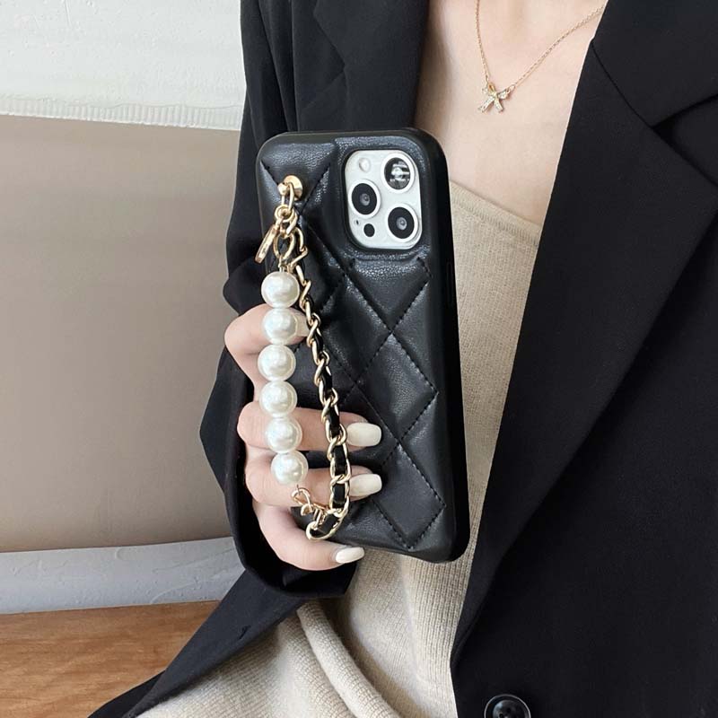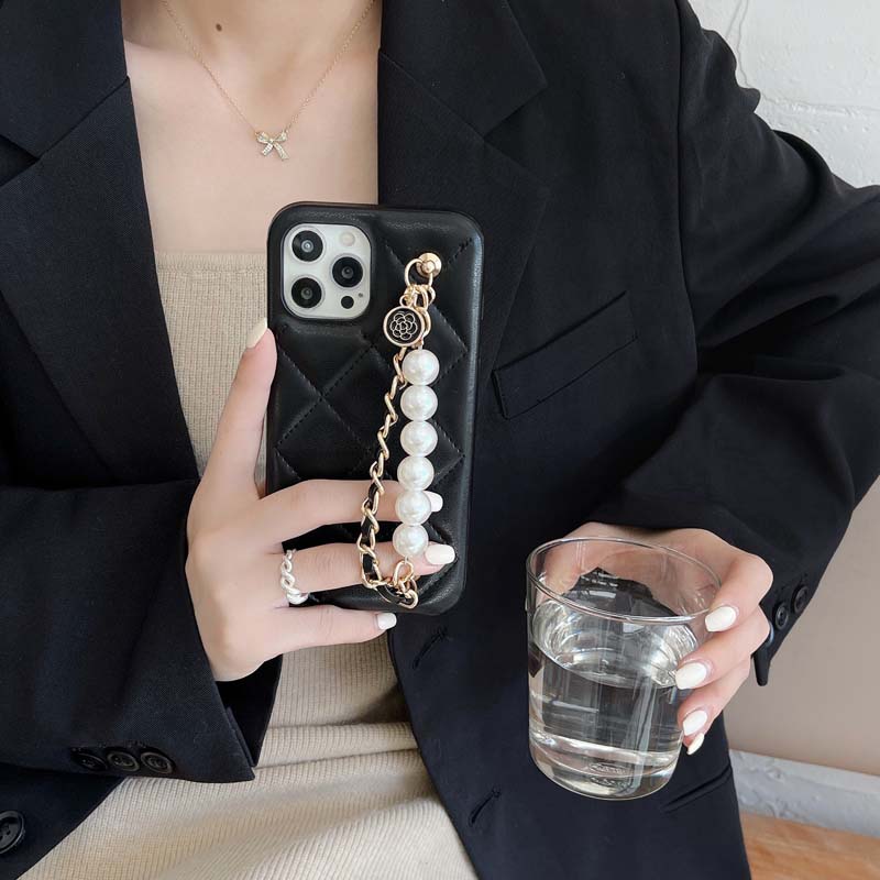 Leather Max Pearl Bracelet Diamond Lattice Car Line Phone Case