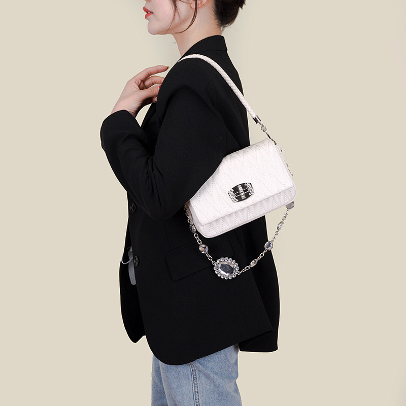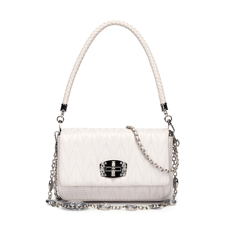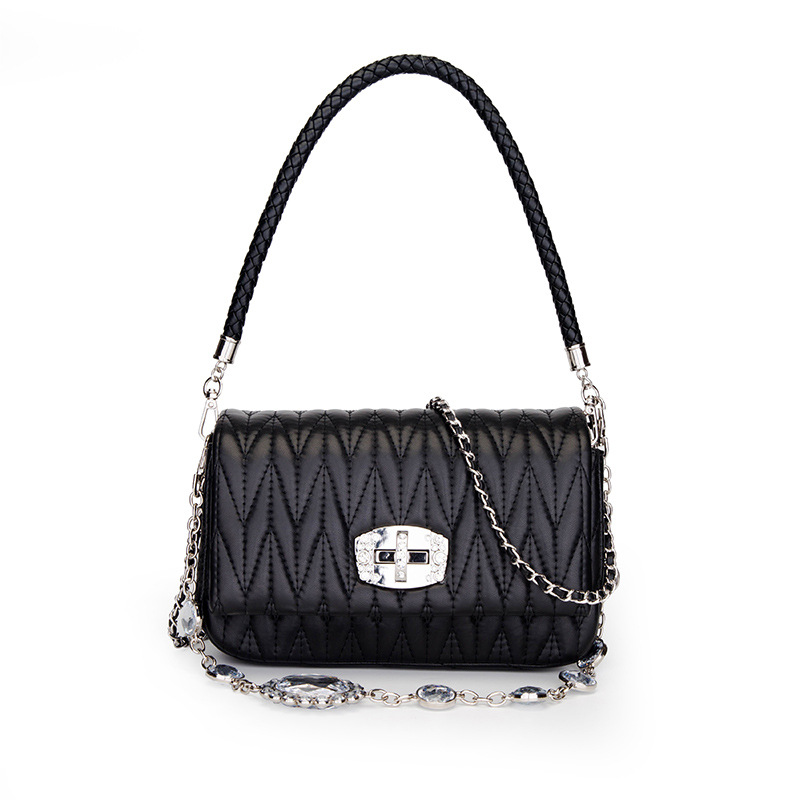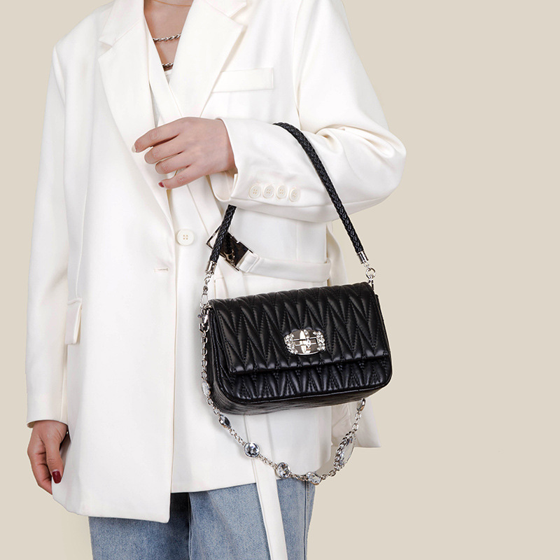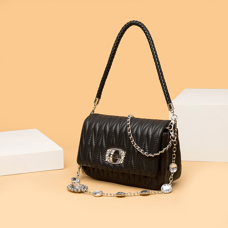 Leather New Versatile Messenger Women's Bag With Rhinestone Chain