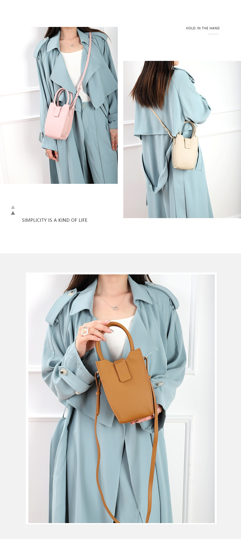 Color: black, pink, khaki, denim blue, beige