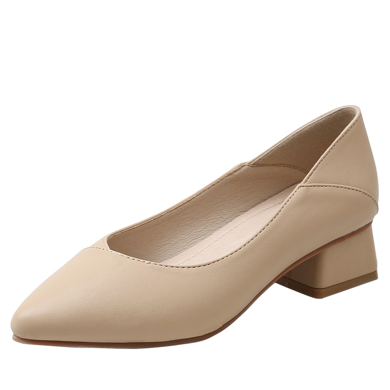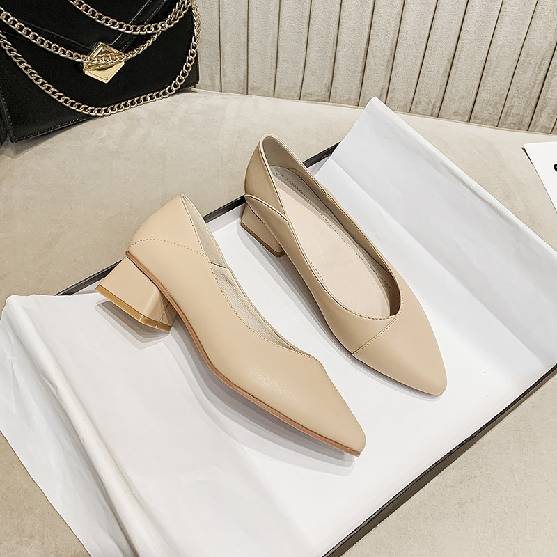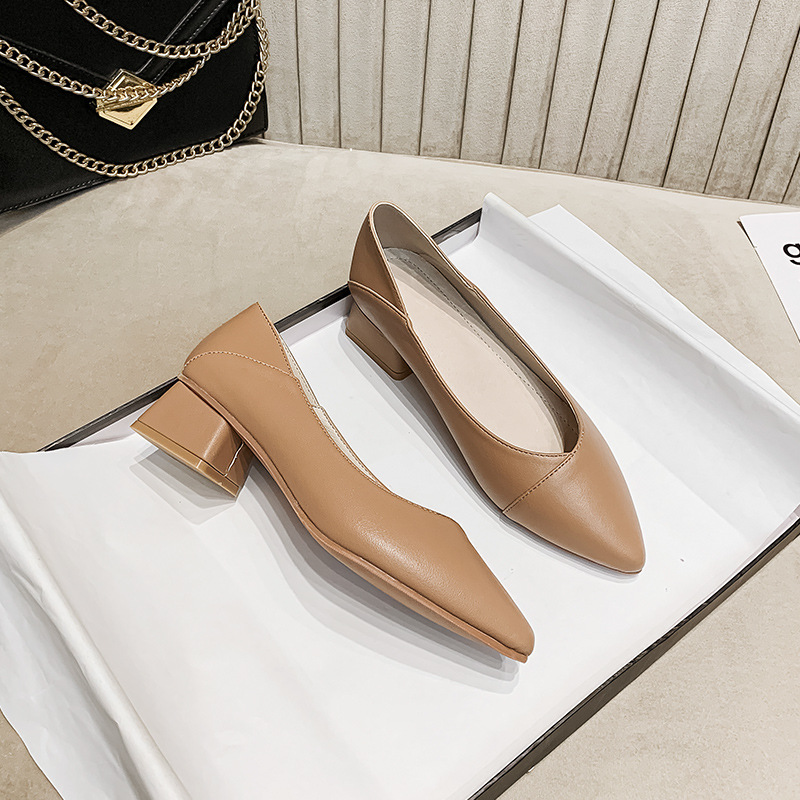 Leather Pointy Toe Cover Middle Heel High Heels Versatile Shallow Mouth Single Shoes