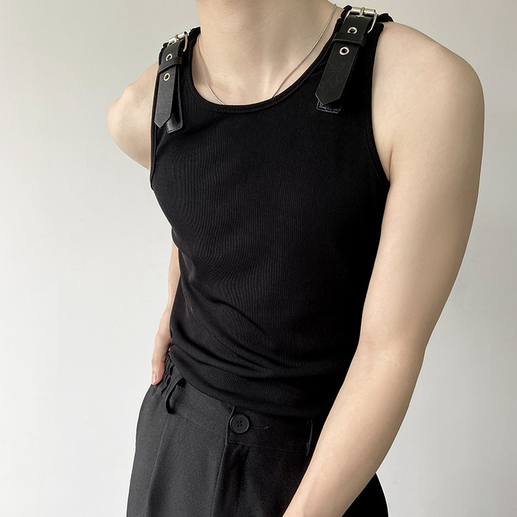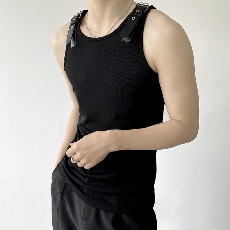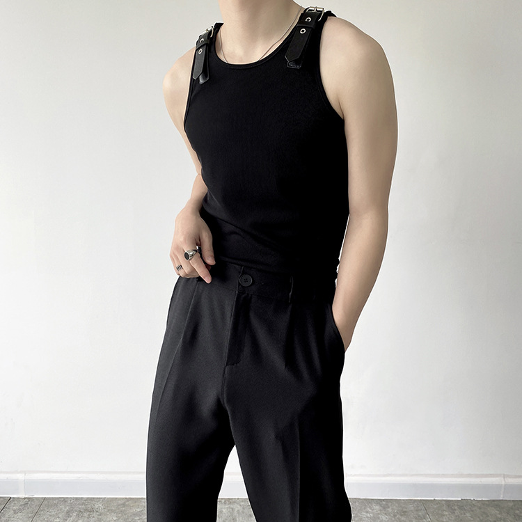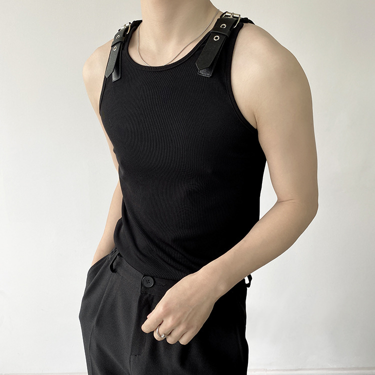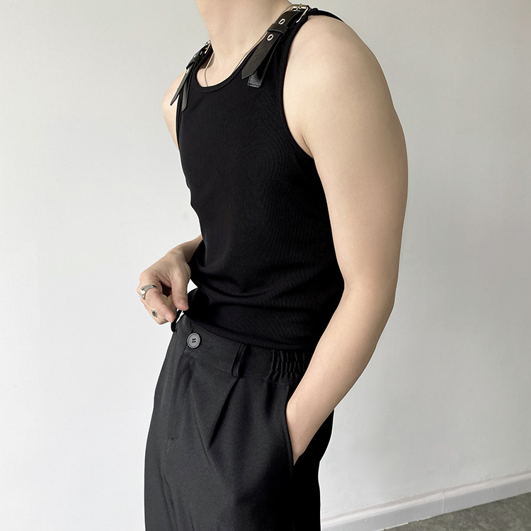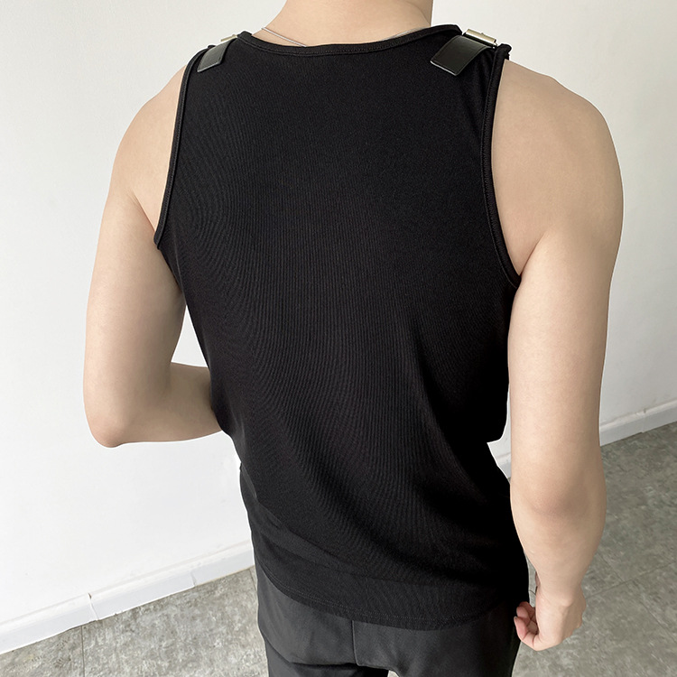 Leather Shoulder Loop Sweater Men's Slim Top