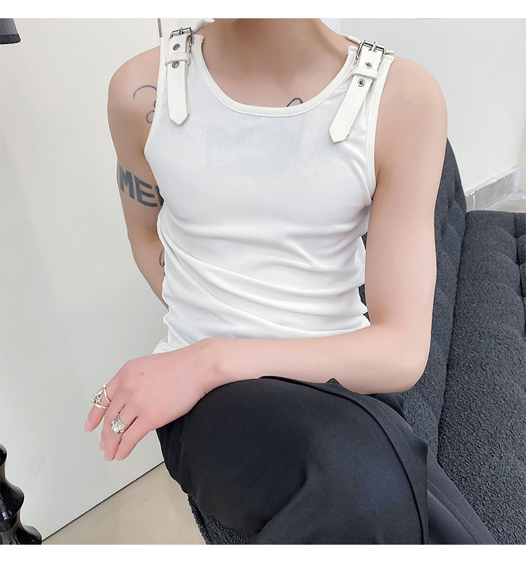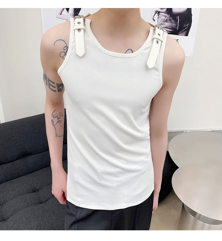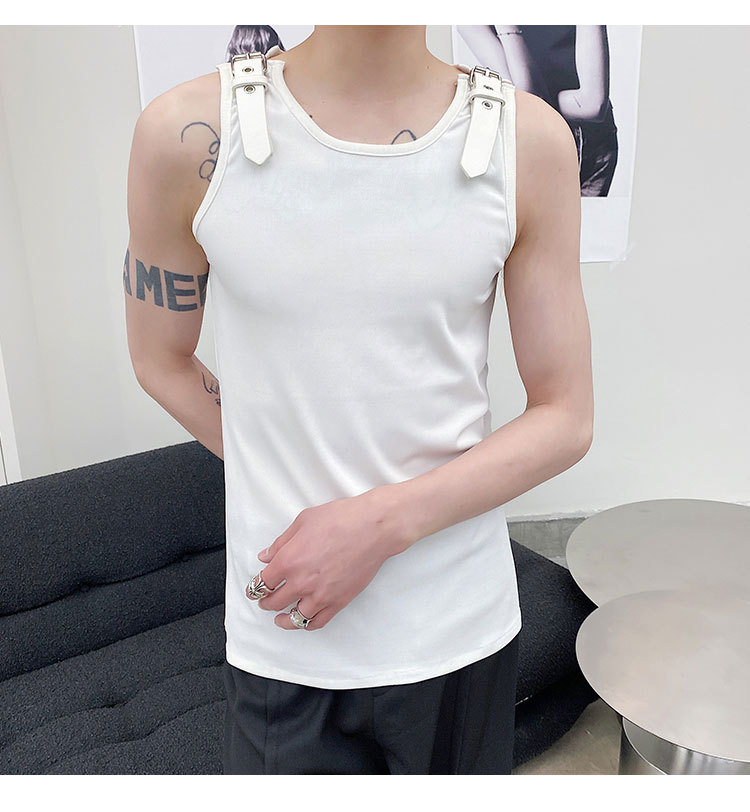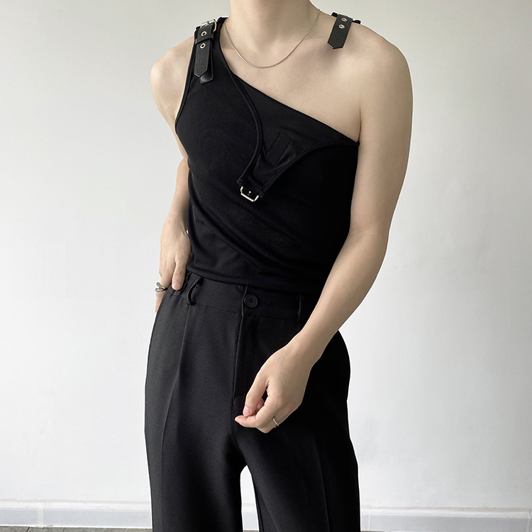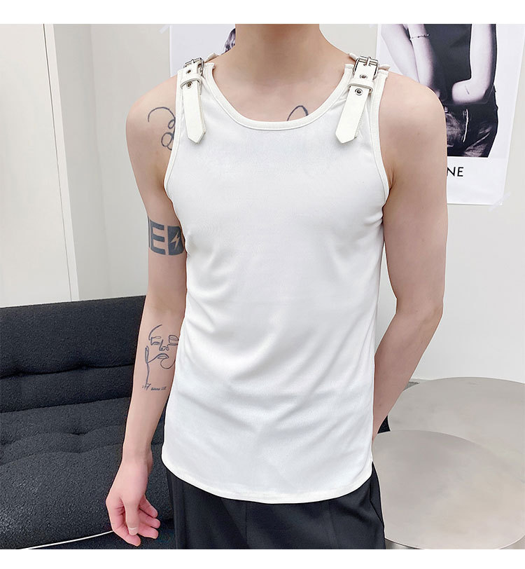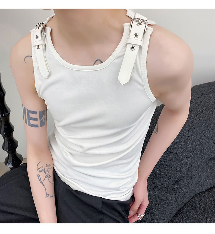 Leather Shoulder Loop Sweater Men's Slim Top