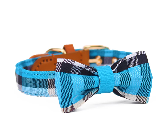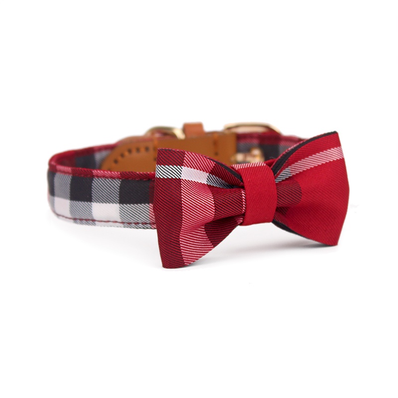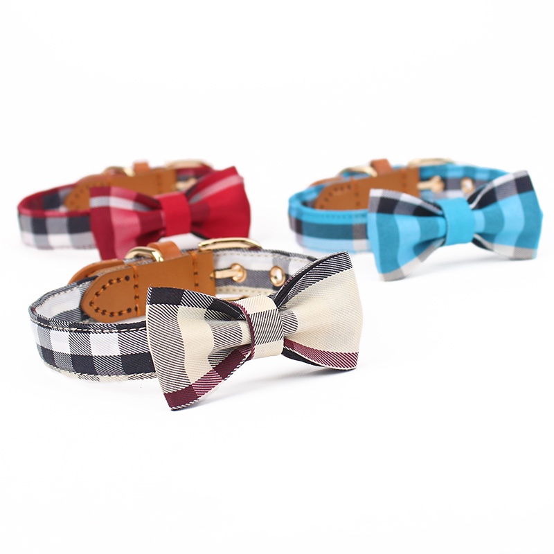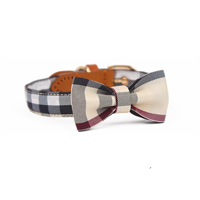 Leather Stitching Drawable Mesh Bow Pet Tie Collar