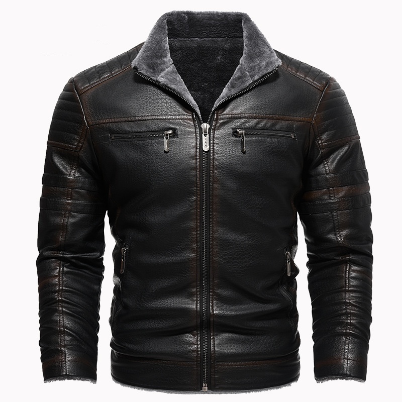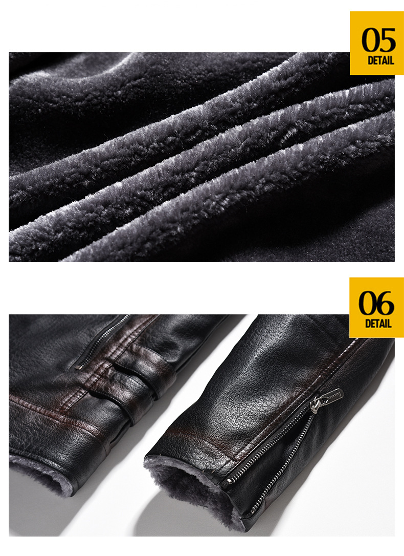Leather Thickened Artificial Leather Plush Warm Jacket