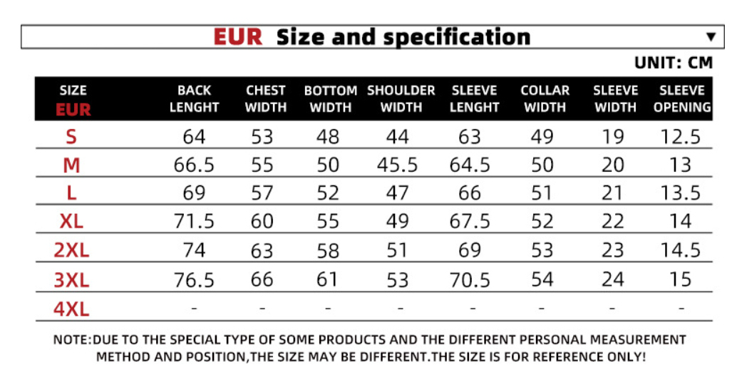 1. Asian sizes are 1 to 2 sizes smaller than European and American people. Choose the larger size if your size between two sizes. Please allow 2-3cm differences due to manual measurement. 2. Please check the size chart carefully before you buy the item, if you don't know how to choose size, please contact our customer service. 3.As you know, the different computers display colors differently, the color of the actual item may vary slightly from the following images.