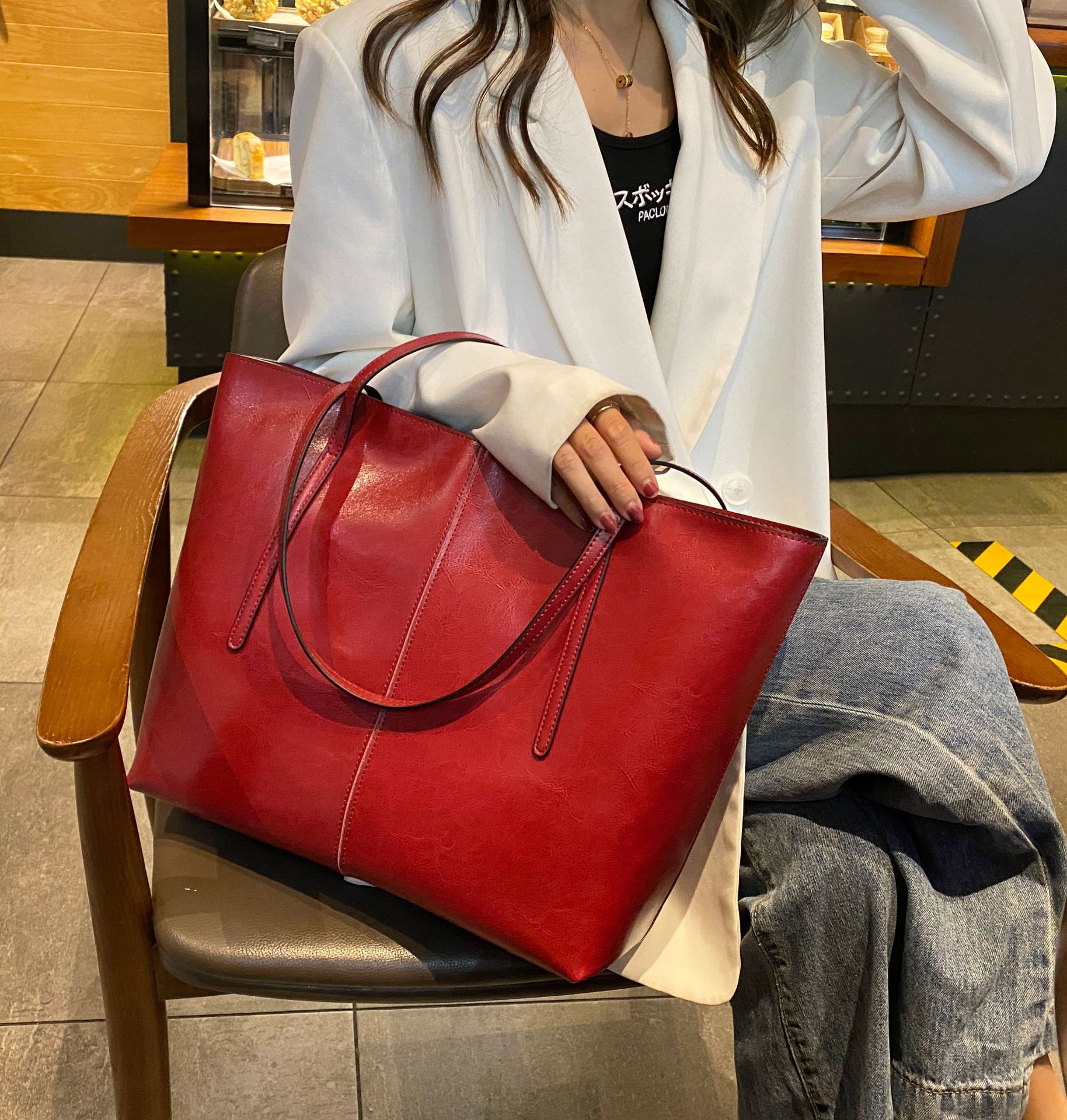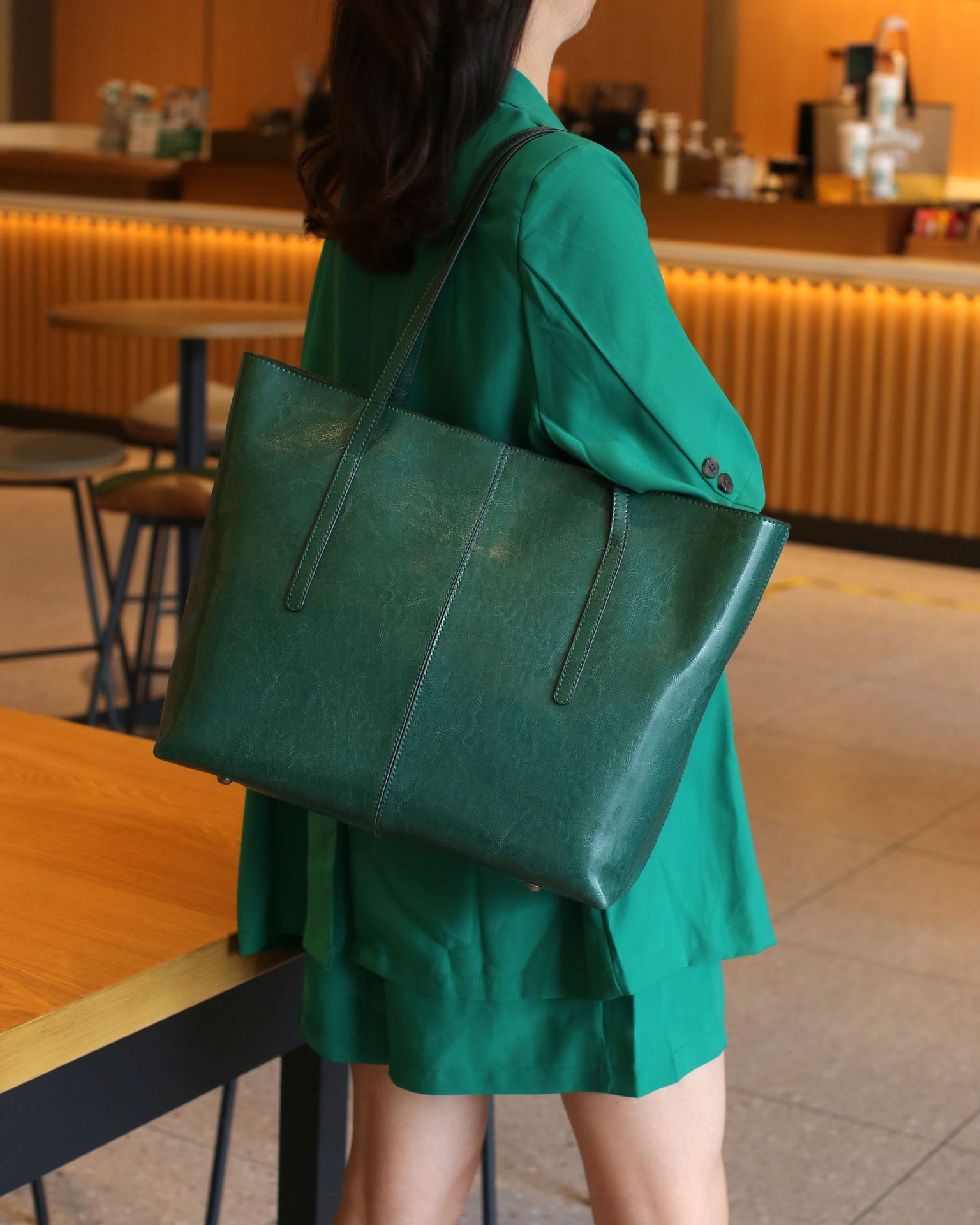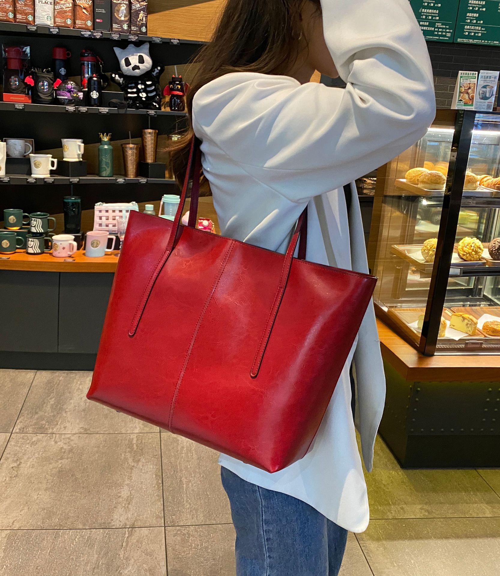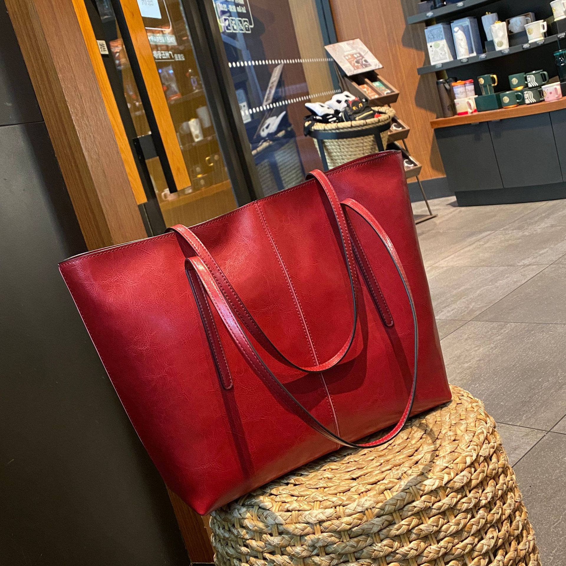 Leather Tote Oil Wax Leather Shoulder Bag For Girls