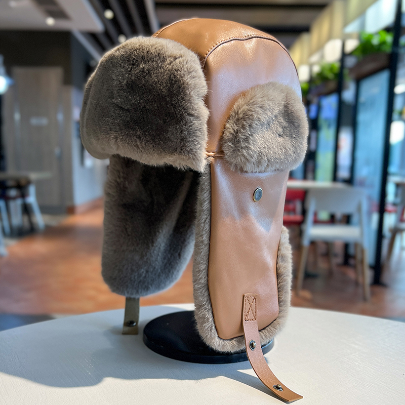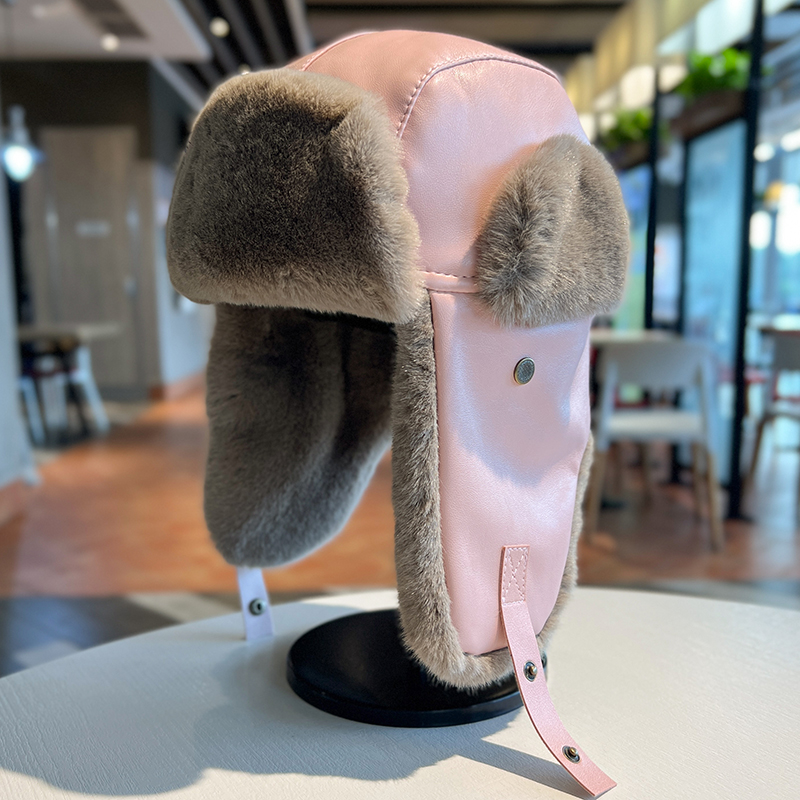 Leather Ushanka Men And Women Autumn And Winter Thickening Warm Earflaps Cap