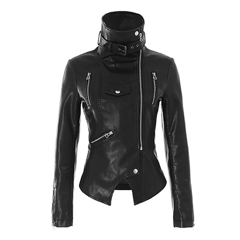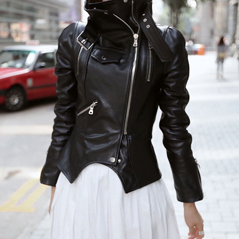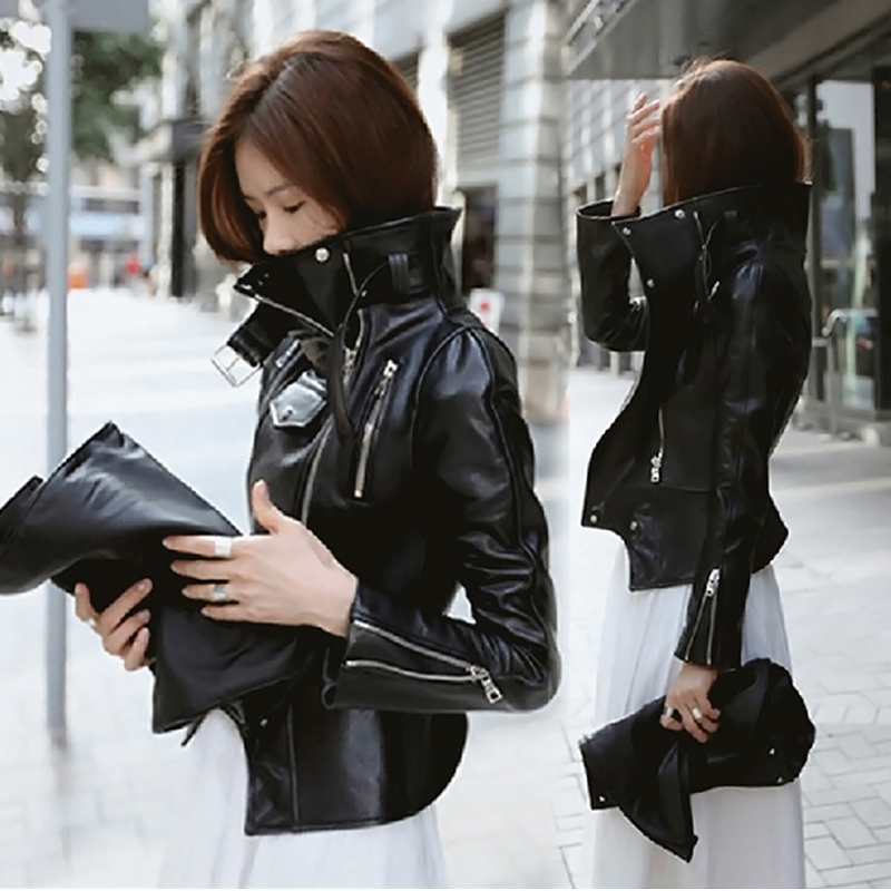 Leather women's jacket autumn new Korean students Slim thin motorcycle leather jacket high waist