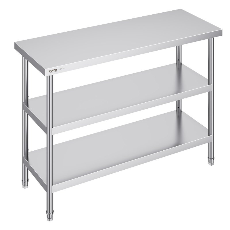 VEVOR Lebensmittel-Zubereitungstisch aus Edelstahl, Gewerblicher Küchenarbeitstisch, mit 2 verstellbaren Unterregalen, 457 x 1219 x 864 mm Zubereitungstisch für Grill, Küche, Zuhause