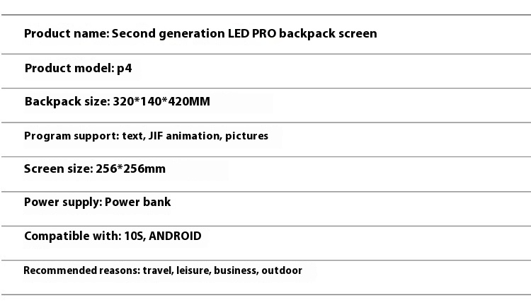 Product information:Screen size: 256*256 Use environment: Outdoor Display Color: full color Pixel pitch: P4