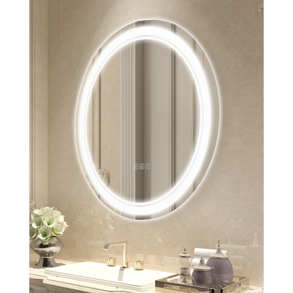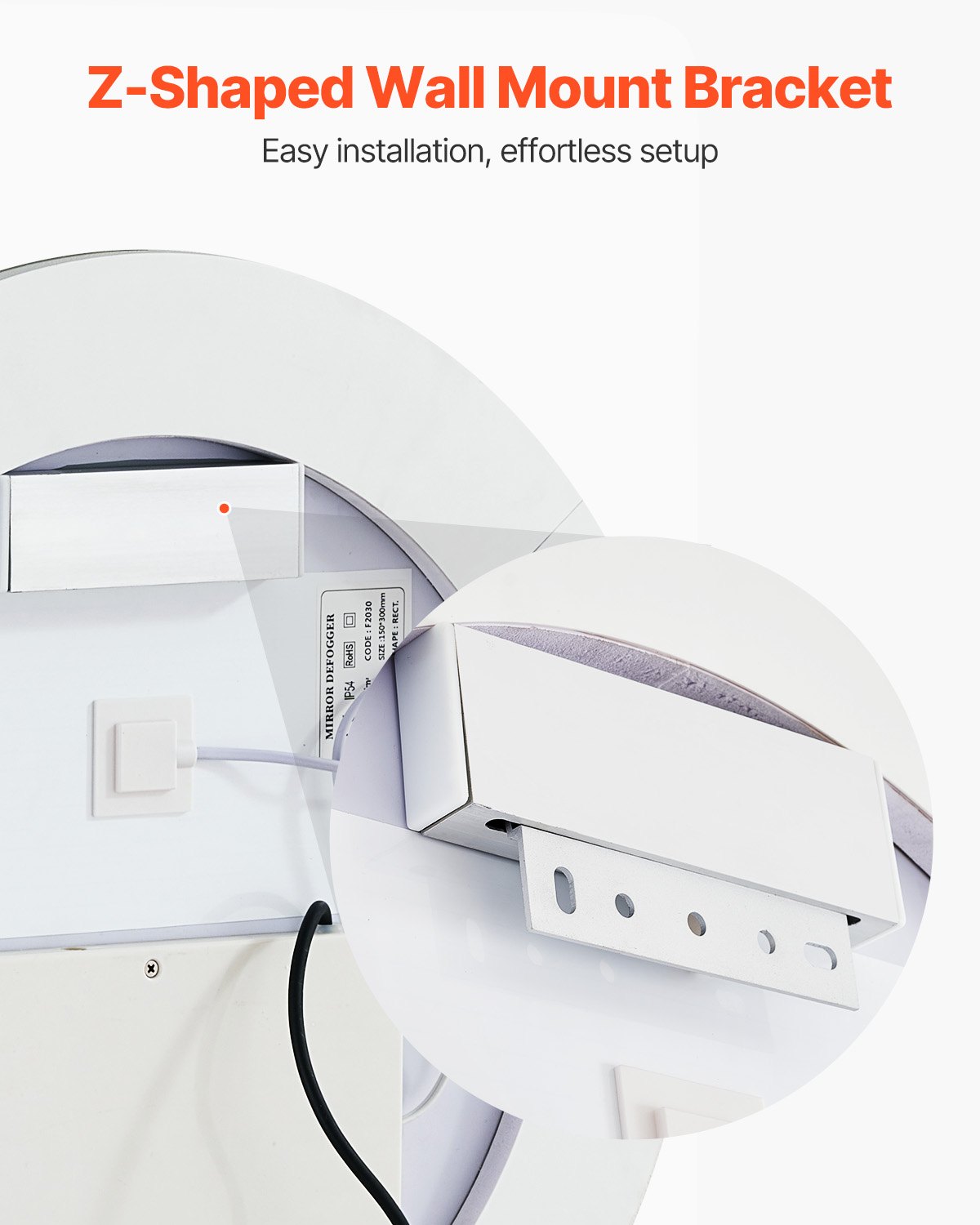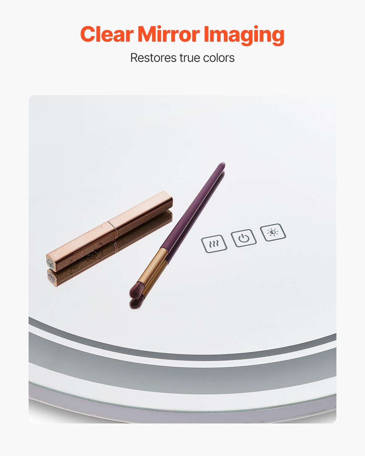 VEVOR LED-Badezimmerspiegel runder Kosmetikspiegel (60 cm) mit Front- und Hintergrundbeleuchtung, beschlagfreier Memory-Spiegel stufenlos dimmbarer Badezimmerspiegel mit 3 Farbtemperaturen Wandmontage