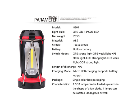 Product Description: Multi-function work light, deformable table lamp + camping light, can be used as charging treasure