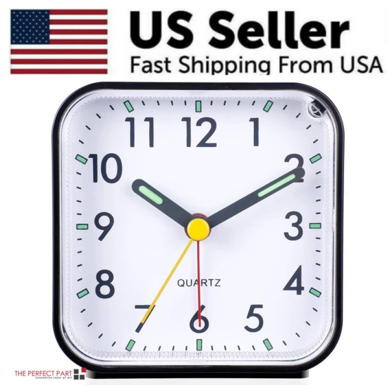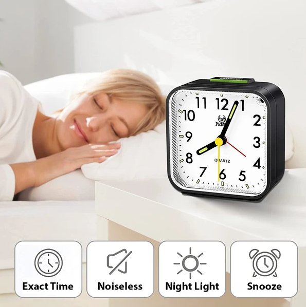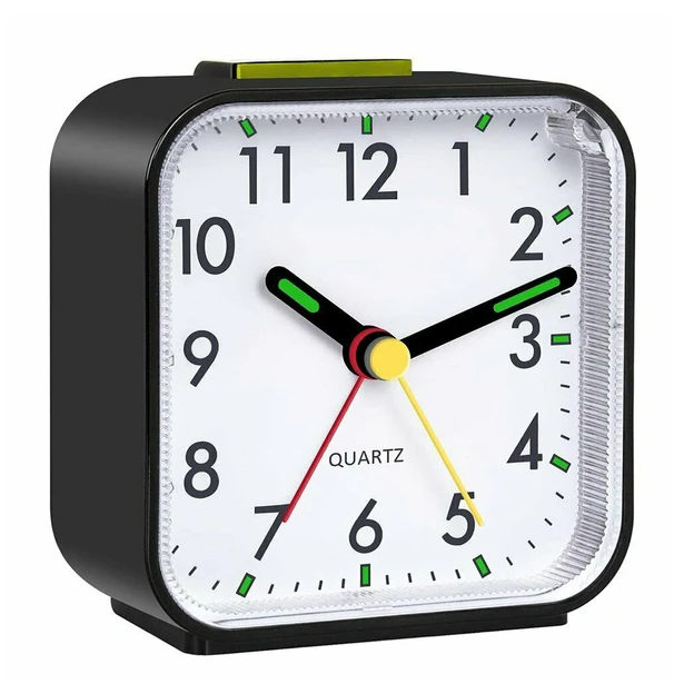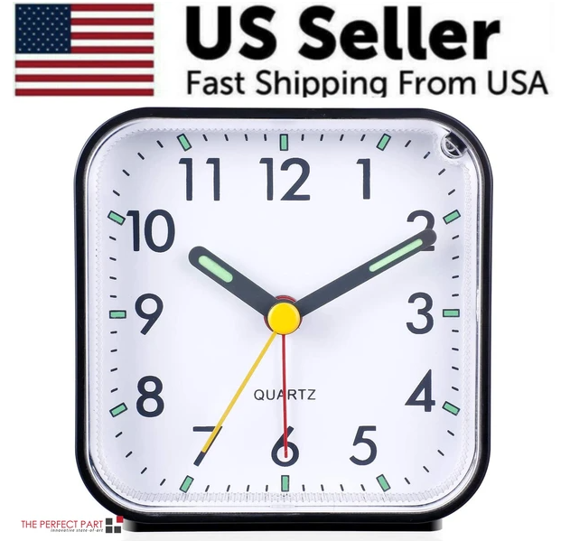 LED Desk Alarm Clock Nightlight Snooze Quiet Non Ticking Battery Powered Bedroom